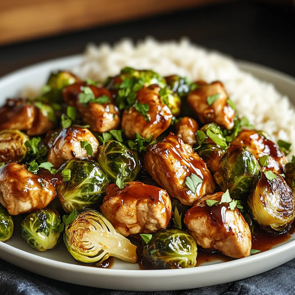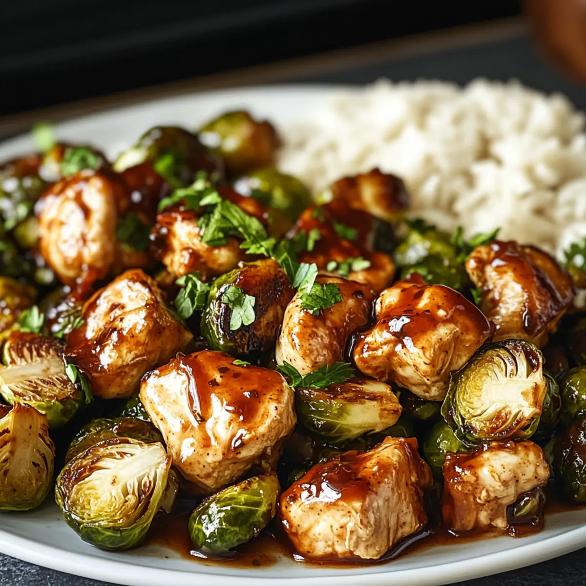 - Drizzle sweet chili sauce over the cooked chicken and Brussels sprouts for flavor.