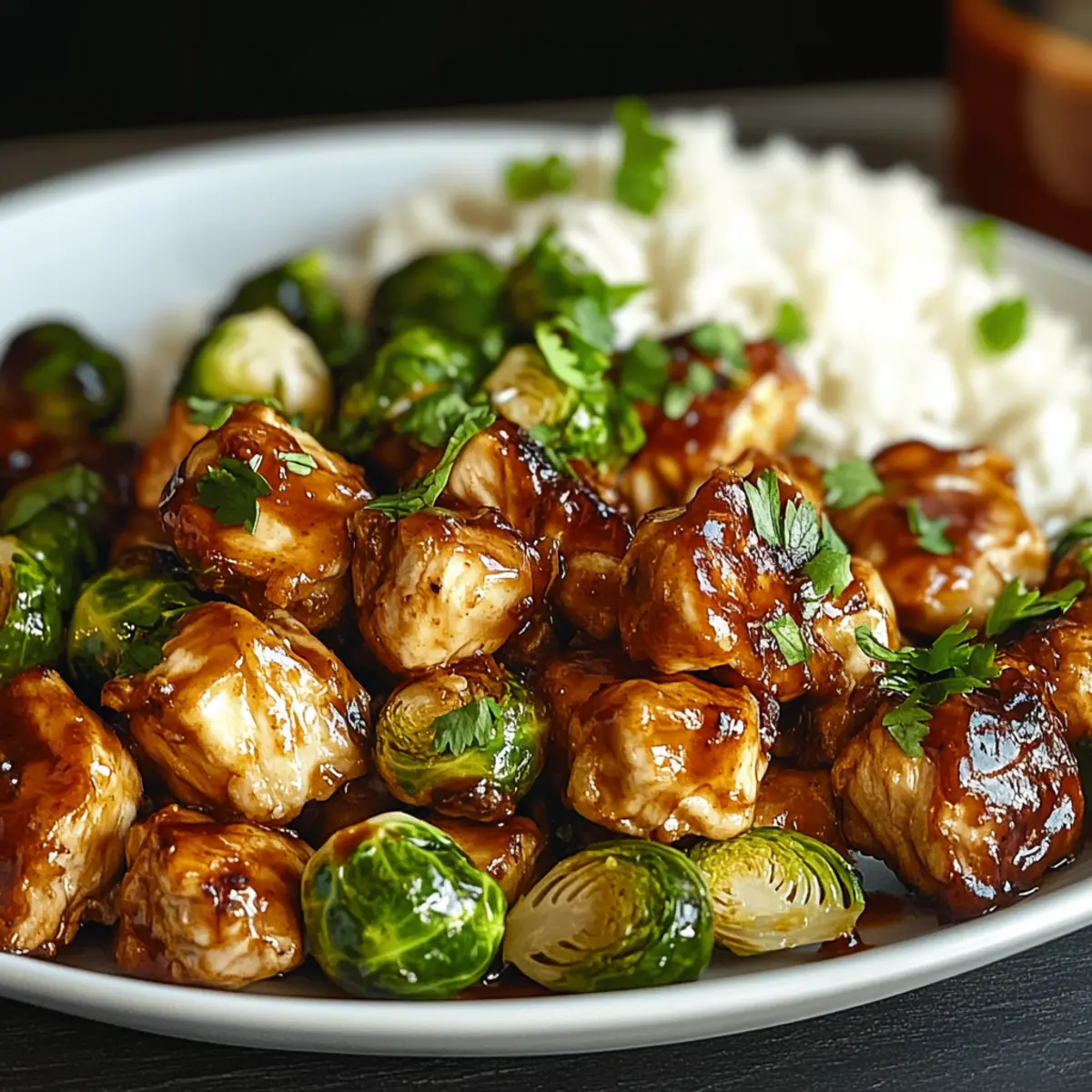 Crispy Air Fryer Sweet Chili Chicken and Brussels Sprouts Delight
