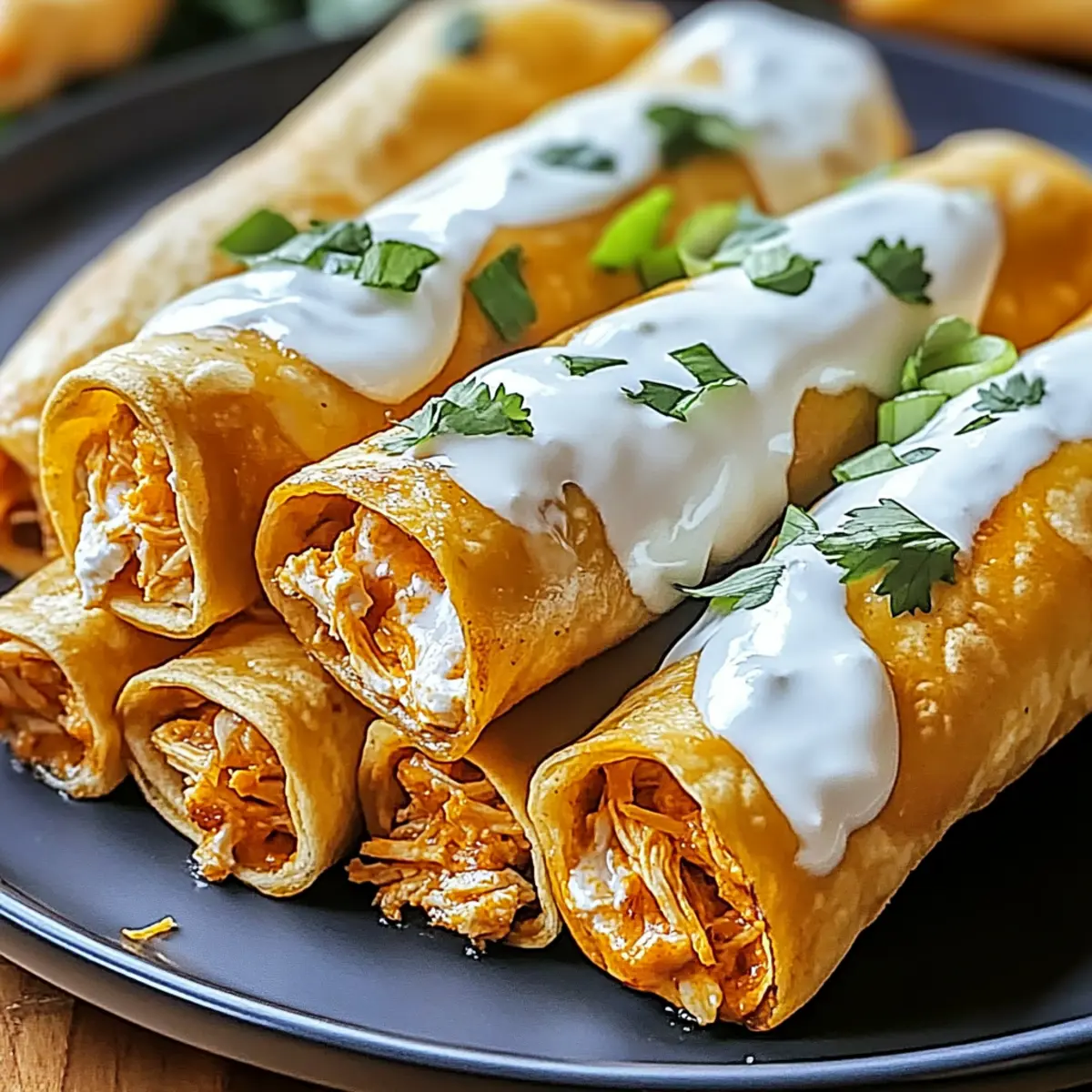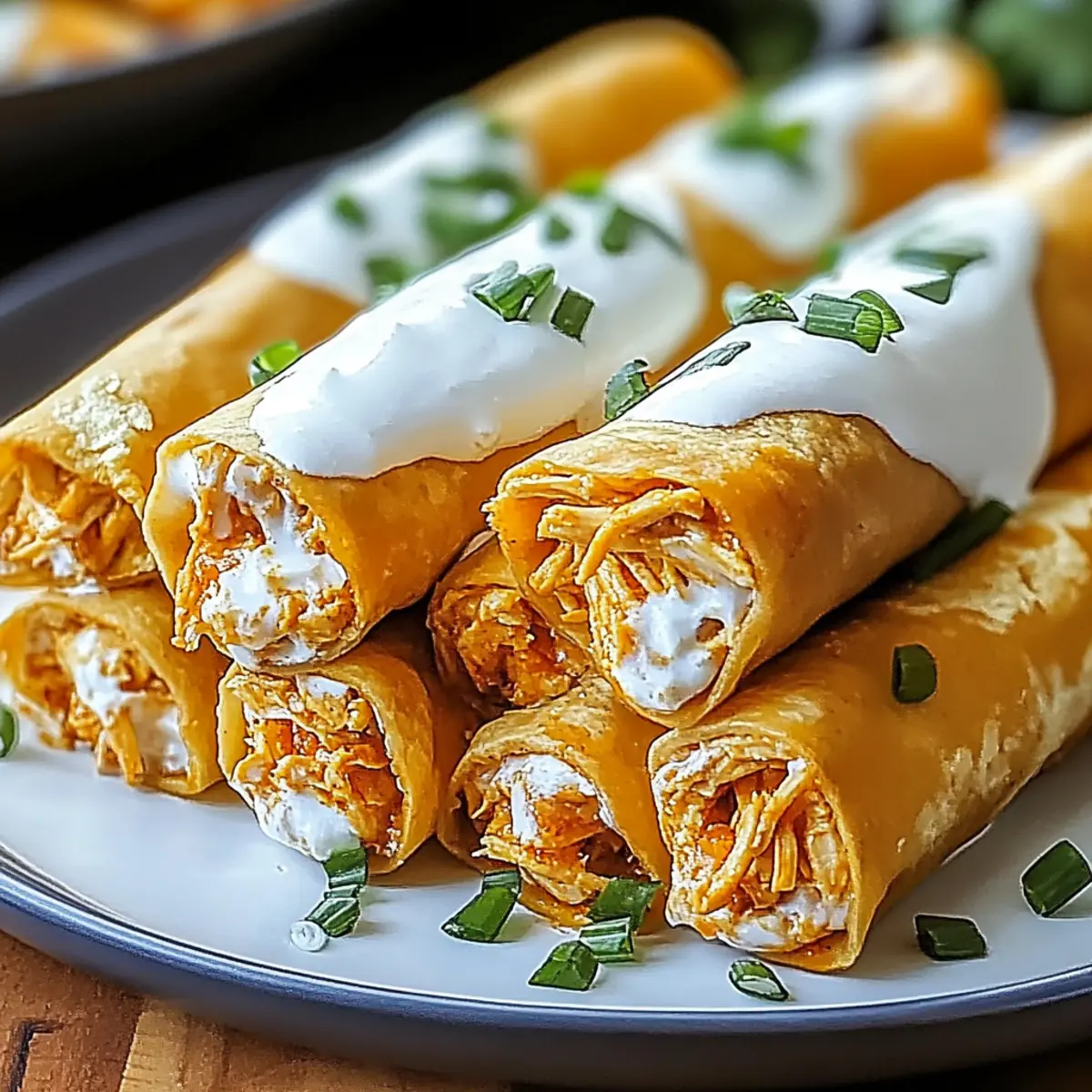 - Garnish & Serve: Let taquitos cool, then top with green onions. Serve warm with sour cream or Greek yogurt.
