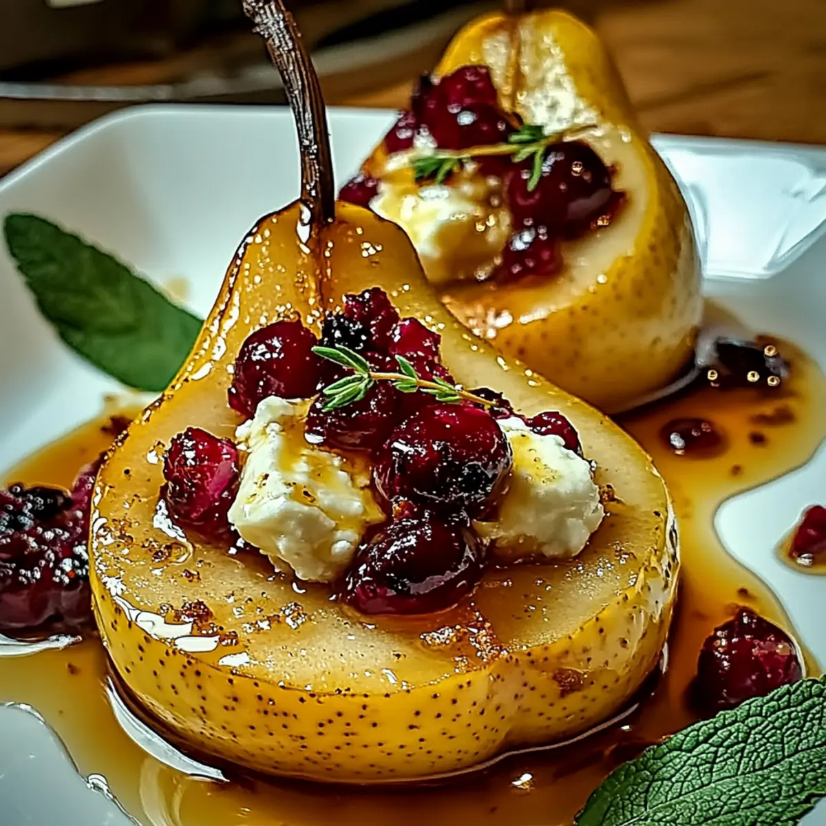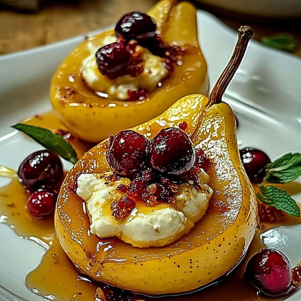 Delicious Baked Pears with Goat Cheese, Honey, and Cranberries