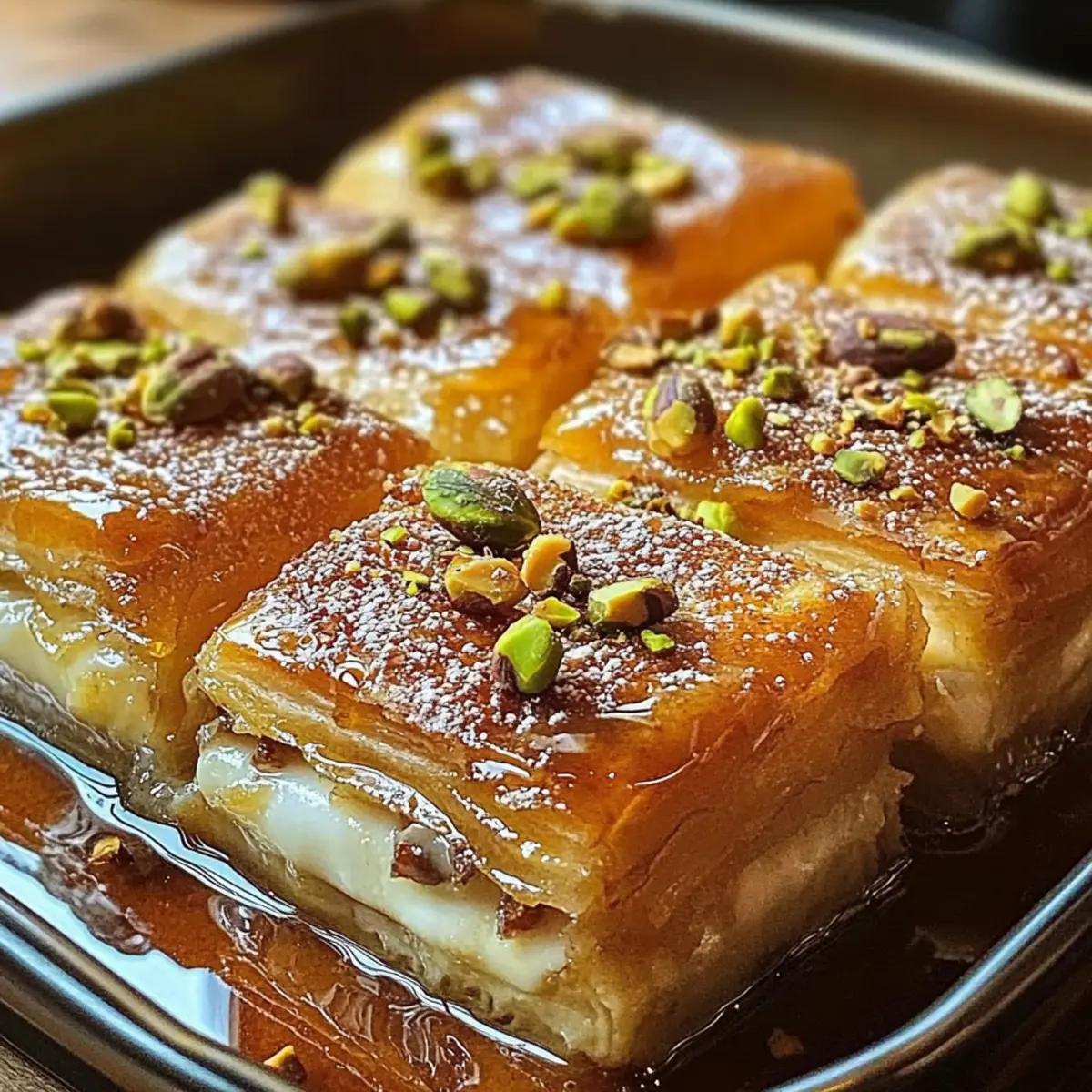 Start by preheating your oven to 350°F (175°C) and greasing a 9×13-inch baking dish liberally with butter or cooking spray. This step ensures that your Baklava French Toast Bake won’t stick, allowing for easy removal once baked. Gather all your ingredients close by so they’re easy to access during the mixing process.
