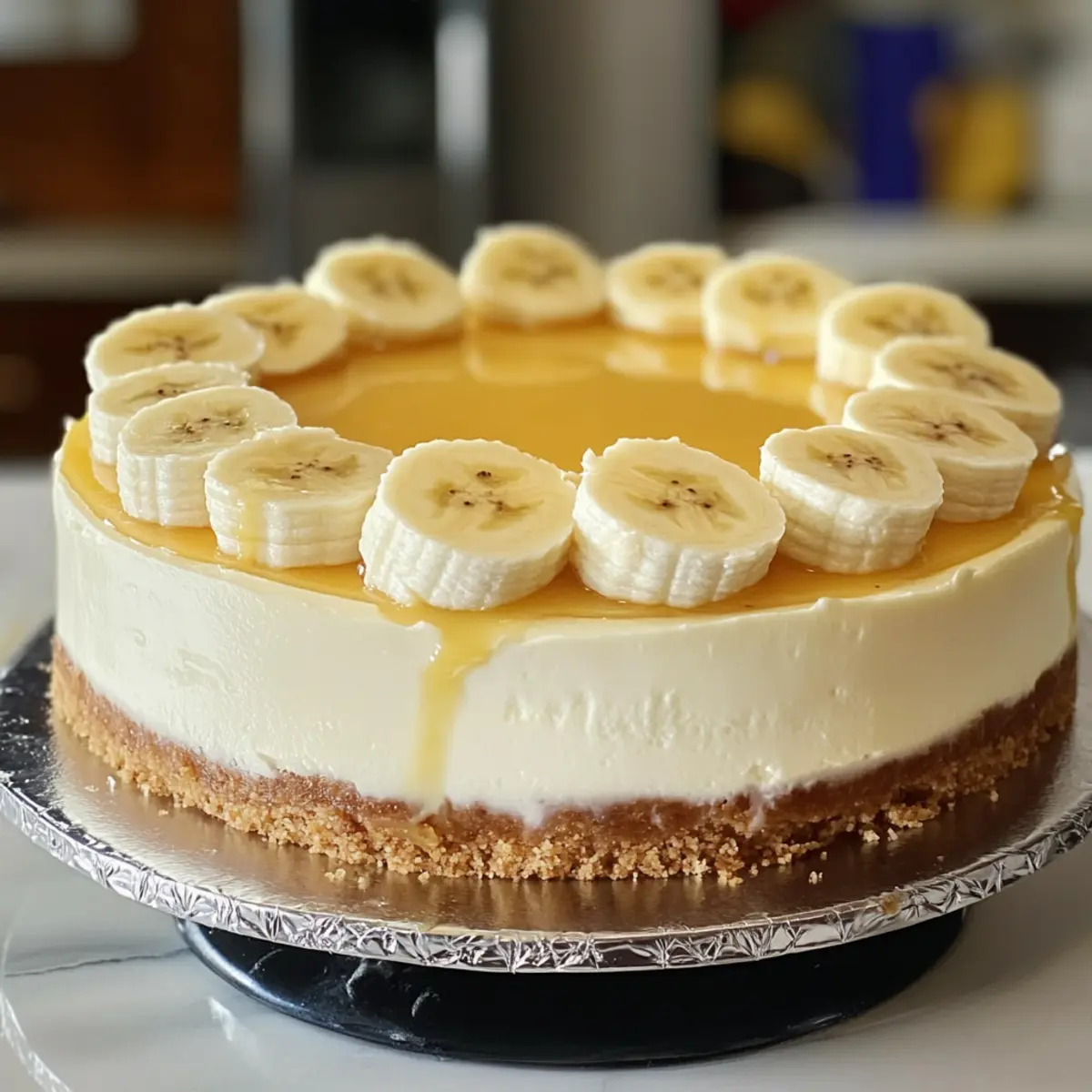 - Before serving, release the springform pan. Top with whipped cream and fresh banana slices, adding optional toppings like caramel drizzle or chocolate shavings. Slice and enjoy chilled.