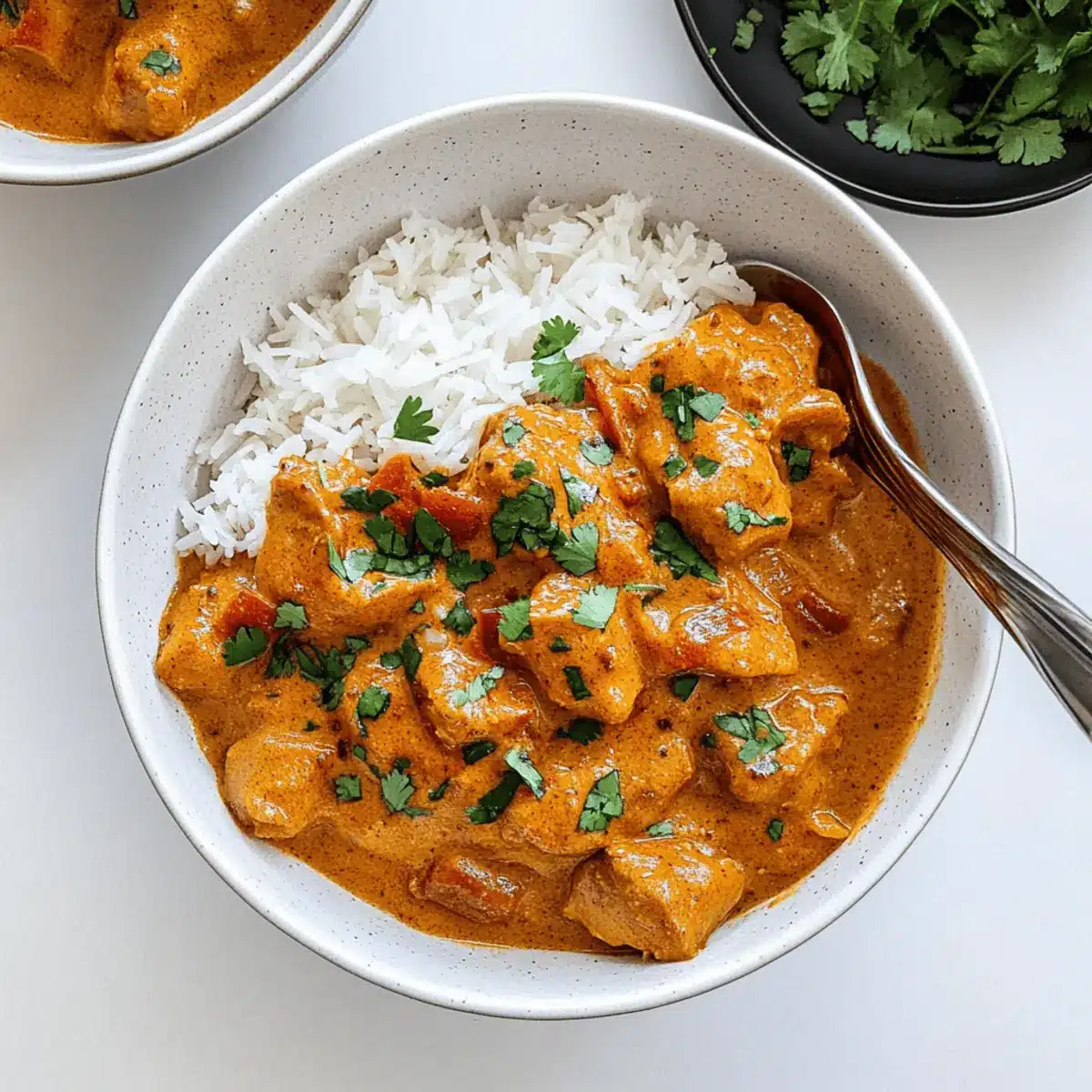 Creamy Comfort: The coconut milk and pumpkin puree create a rich, velvety sauce that envelops tender chicken pieces for a heartwarming dish.