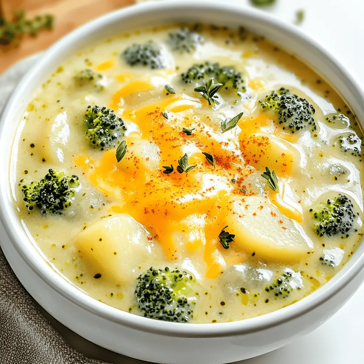 As the chilly breeze wraps around me, I can almost taste the creamy warmth of my favorite comfort food: Broccoli Potato Cheese Soup. This isn’t just any soup; it’s a creamy, dreamy concoction that combines the earthy goodness of broccoli and tender potatoes with the sharp notes of cheddar cheese. What I adore about this recipe is its ease—whip it up in no time, making it perfect for a cozy dinner after a long day or as a crowd-pleaser at your next gathering. Plus, it’s so customizable that you can cater to any dietary preferences while keeping that comforting essence intact. Ready to settle into a bowl of pure satisfaction? Let’s dive into this delightful recipe together!