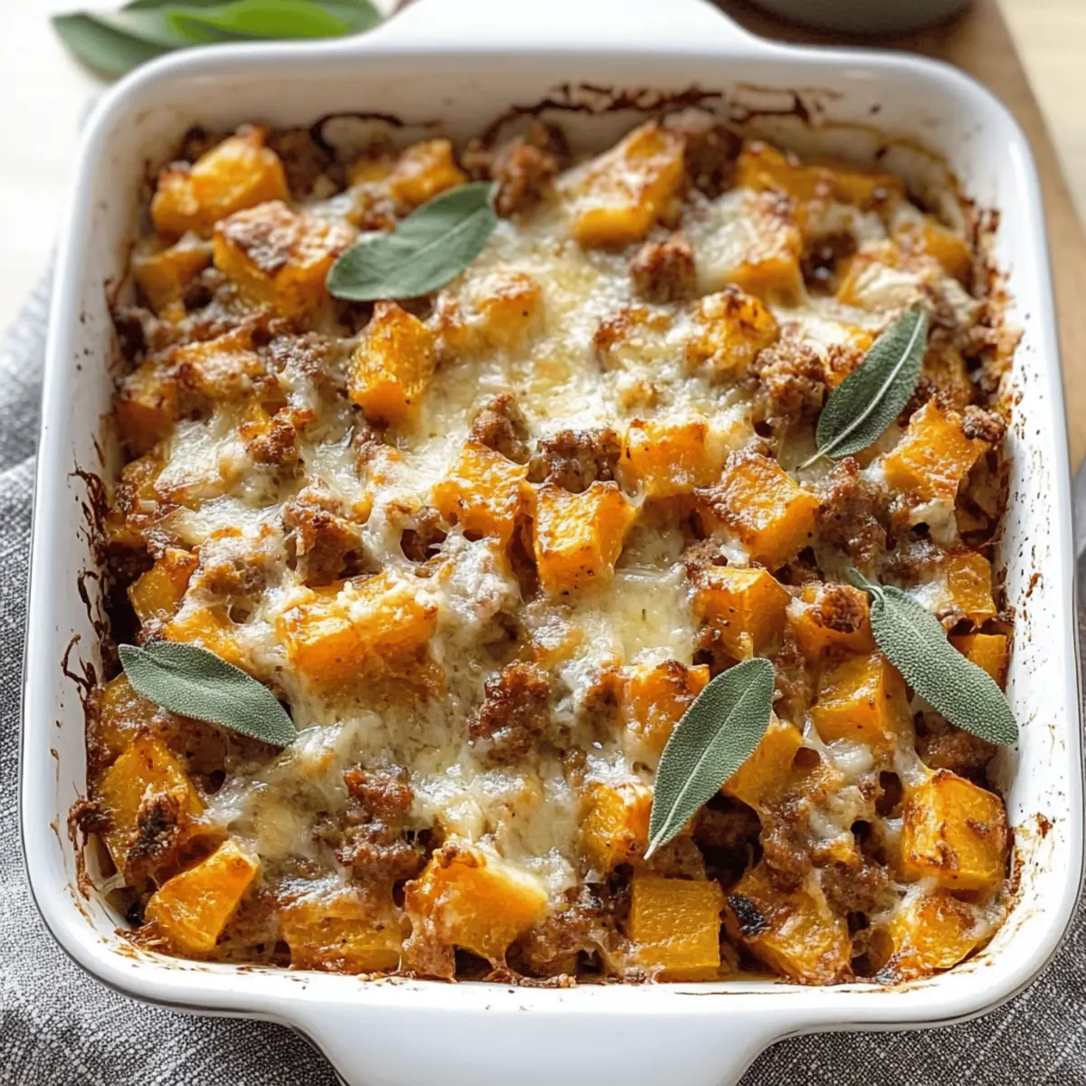 Comforting warmth: This Butternut Squash Casserole wraps you in cozy flavors, blending sweet squash with savory sausage.