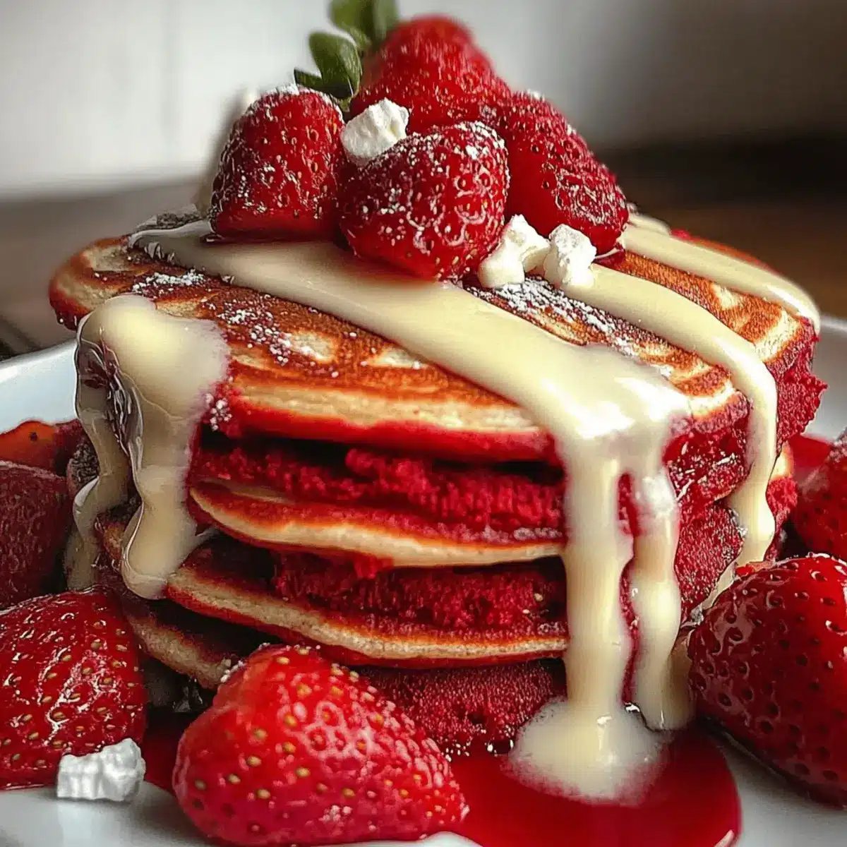 Irresistible Red Velvet Pancakes with Cream Cheese Glaze