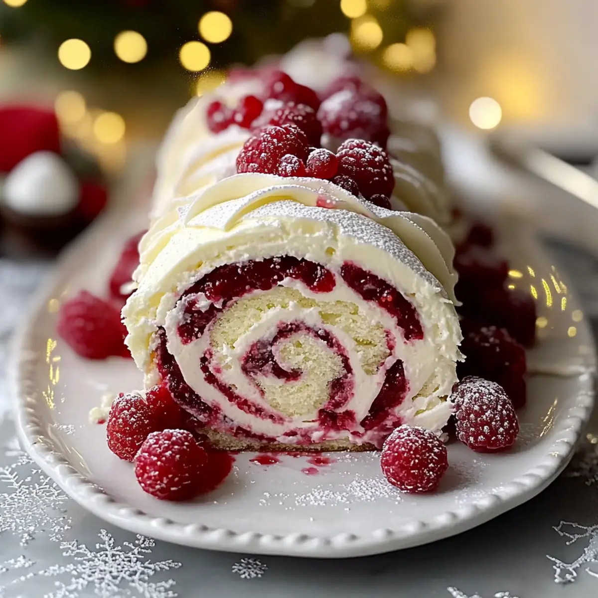 Irresistible White Chocolate Raspberry Yule Log for the Holidays