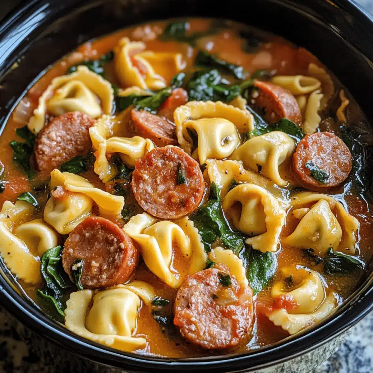 Crockpot Cheese Tortellini and Sausage for Cozy Family Nights