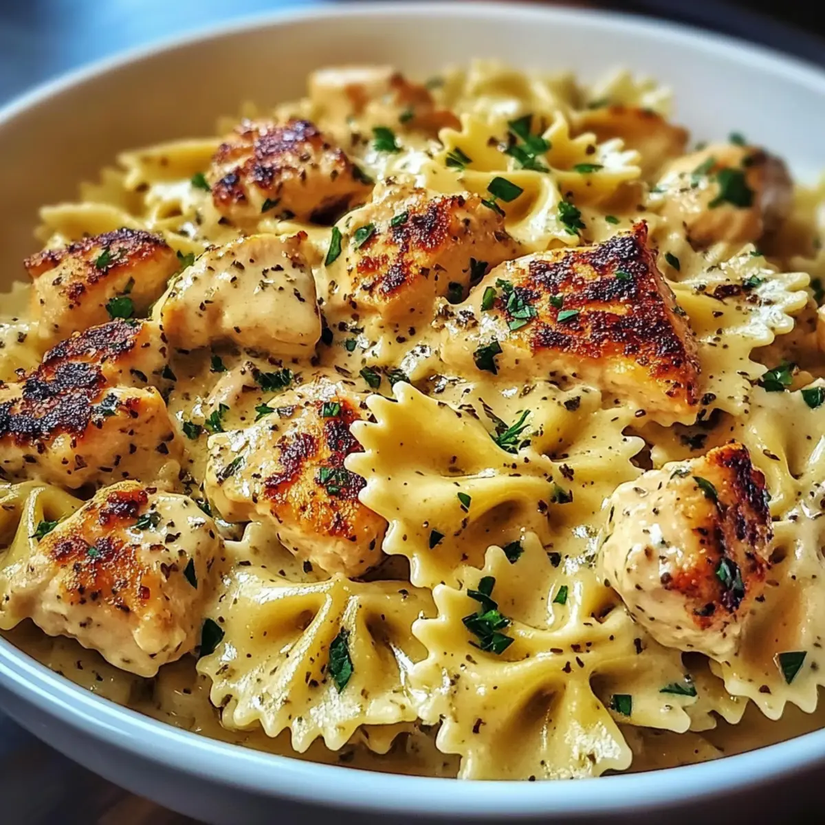 Mozzarella Garlic Butter Chicken Bowties in Cheesy Cream Bliss