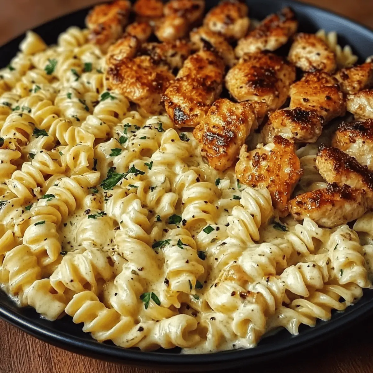 Cheesy Alfredo Twisted Pasta with Golden Garlic Butter Chicken
