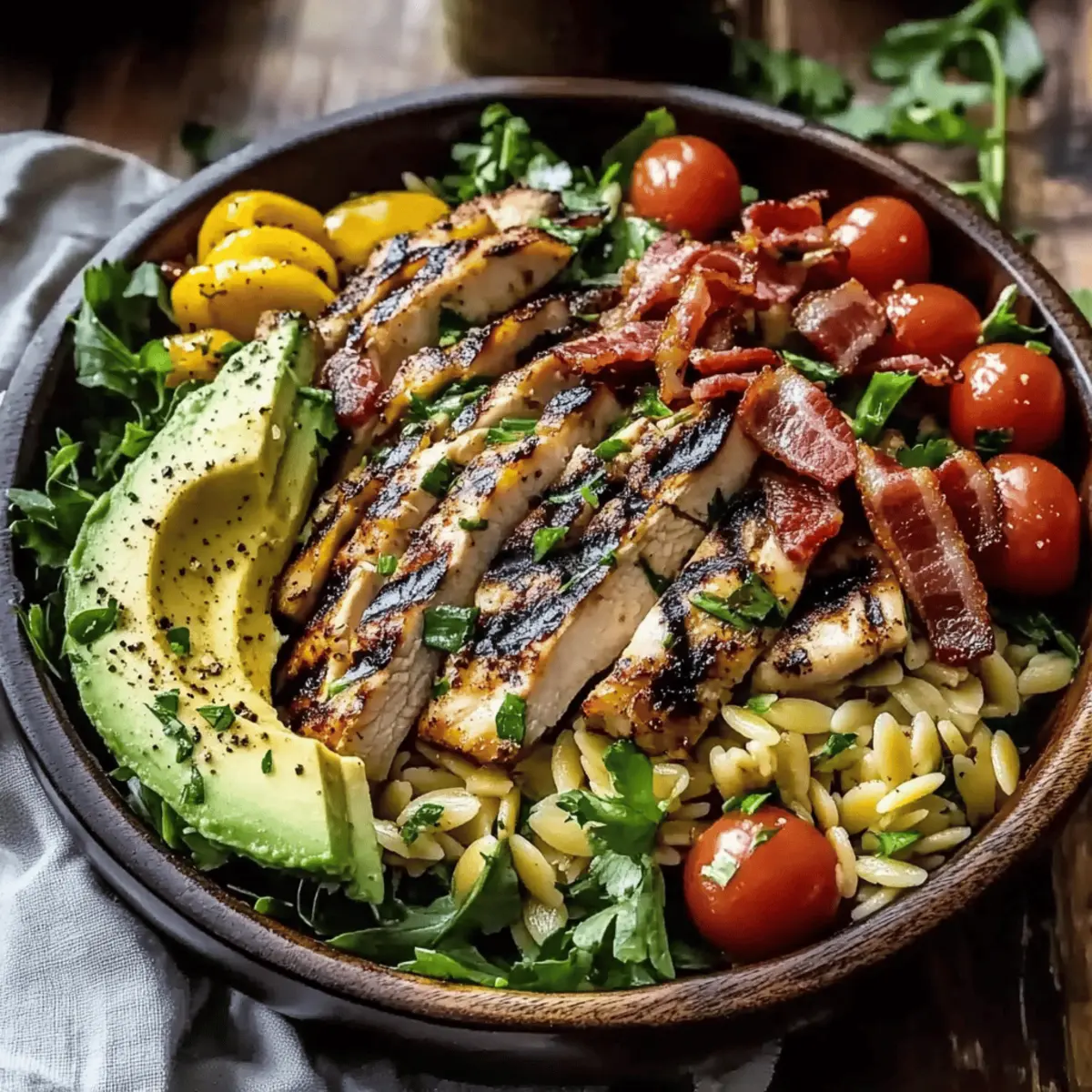 Grilled Lemon Herb Chicken Avocado Orzo Salad Delights!