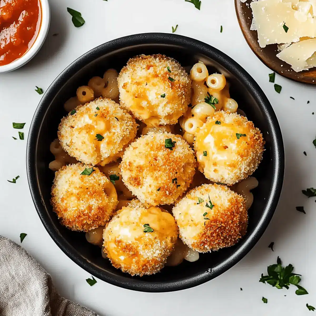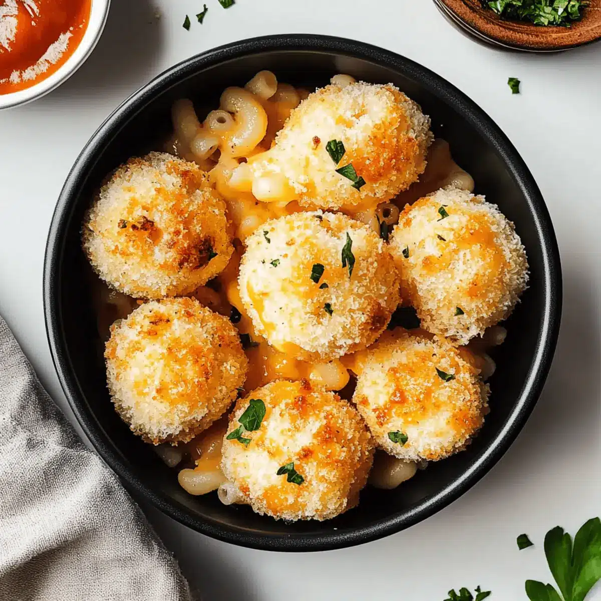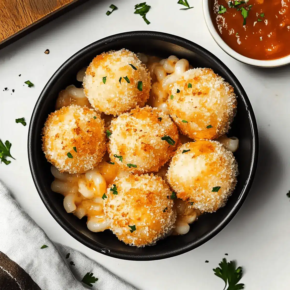 - Spiced Up Crust: Use Italian-seasoned breadcrumbs instead of plain to give your mac and cheese balls a flavorful crunch.