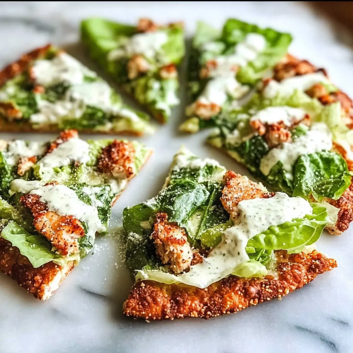 Unique and Wholesome: This recipe combines a crispy chicken base with a classic Caesar salad, offering a refreshing spin on traditional pizza.