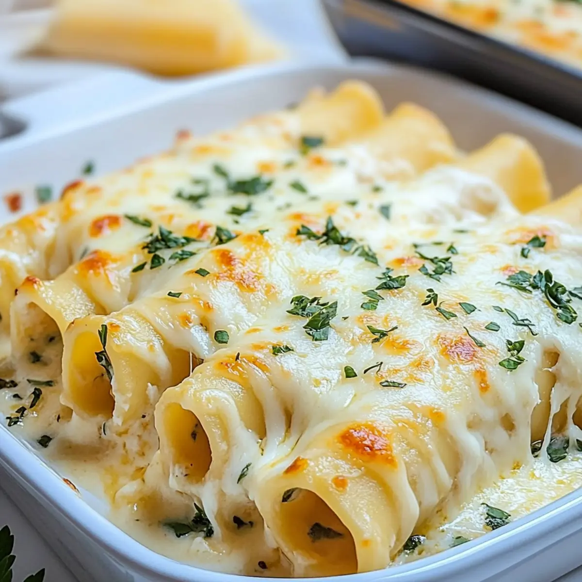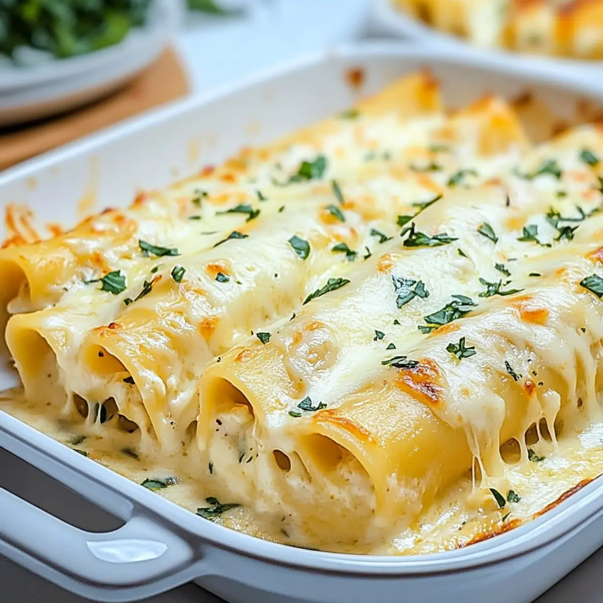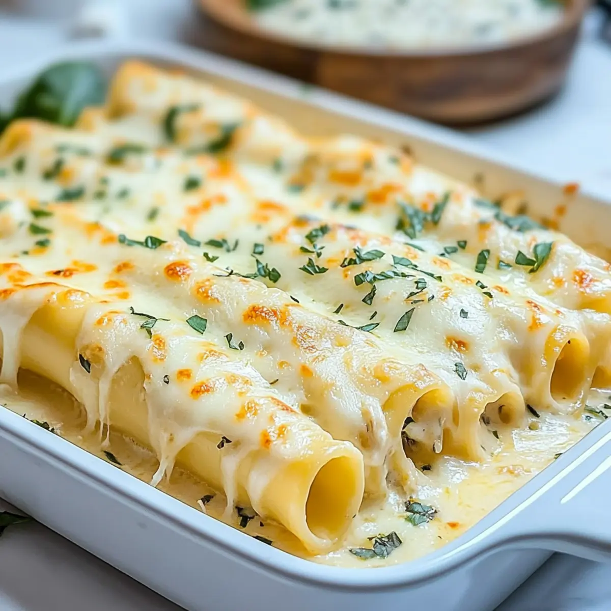 Comforting, this Chicken Manicotti Alfredo wraps you in a warm embrace, making it the ultimate family favorite. Versatile, you can easily switch up the filling by adding veggies or even opting for a vegetarian version. Time-saving, it’s a dish that can be prepared ahead and even frozen for easy weeknight dinners. Decadent flavors come from the rich Alfredo sauce combined with gooey cheeses, ensuring every bite is a taste of heaven. Crowd-pleasing, it’s perfect for gatherings, turning any dinner into a special occasion. Serve it alongside a refreshing salad or some garlic bread for the ultimate dinner experience!
