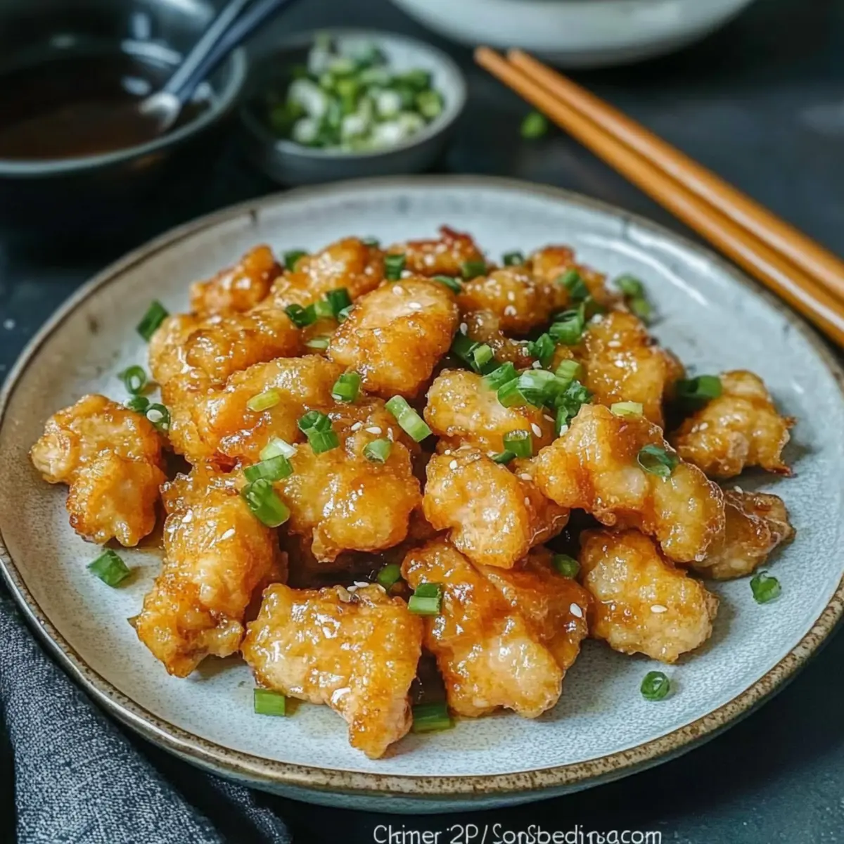 • Egg – Binds the cornstarch to the chicken, helping achieve a crunch without deep frying.