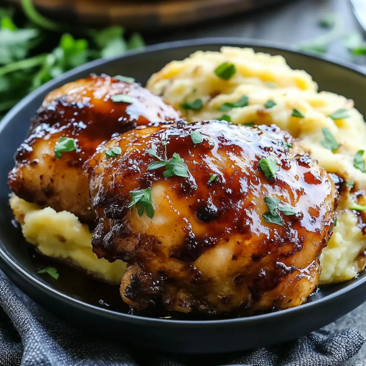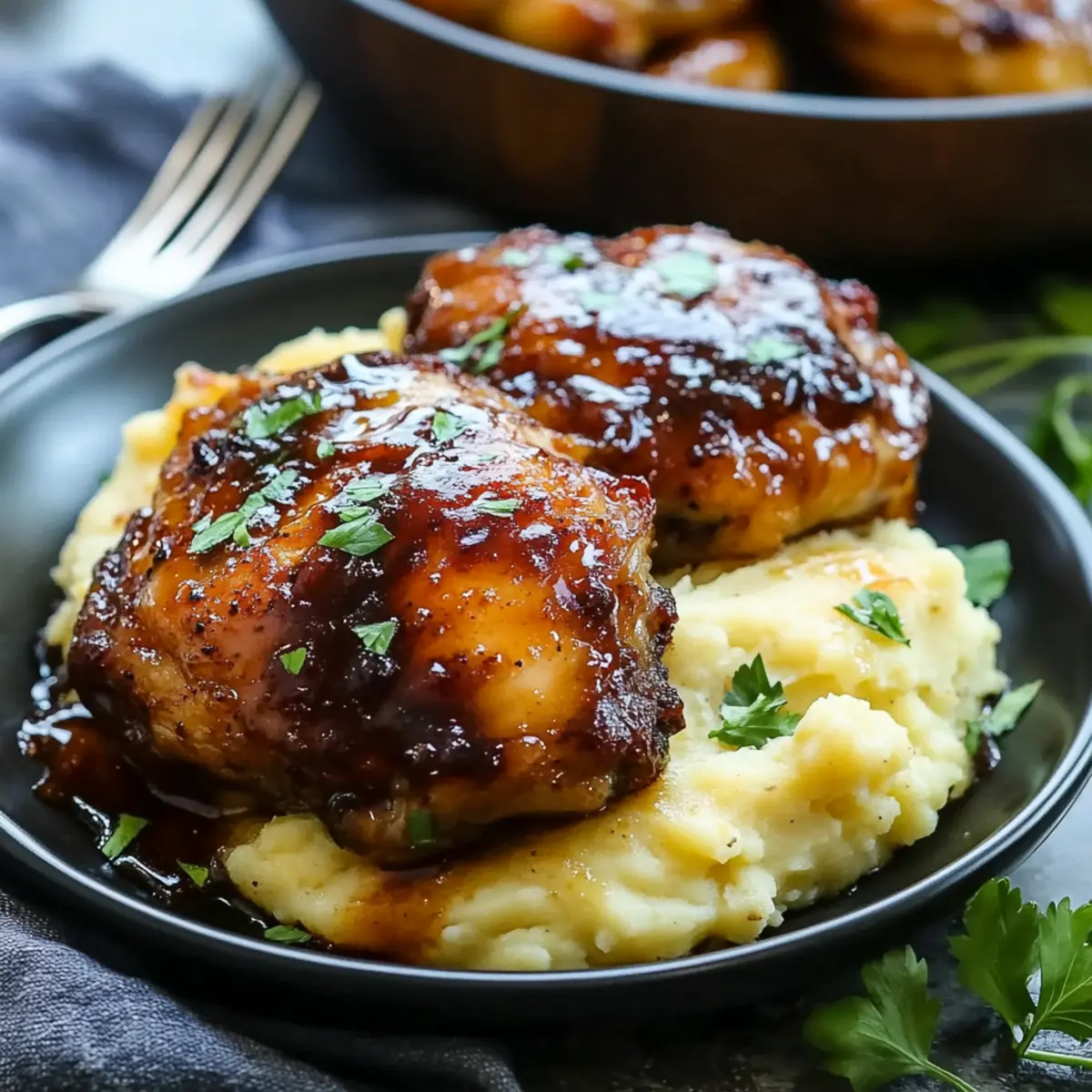 Chipotle Honey Chicken Thighs with Creamy Gouda Mashed Potatoes