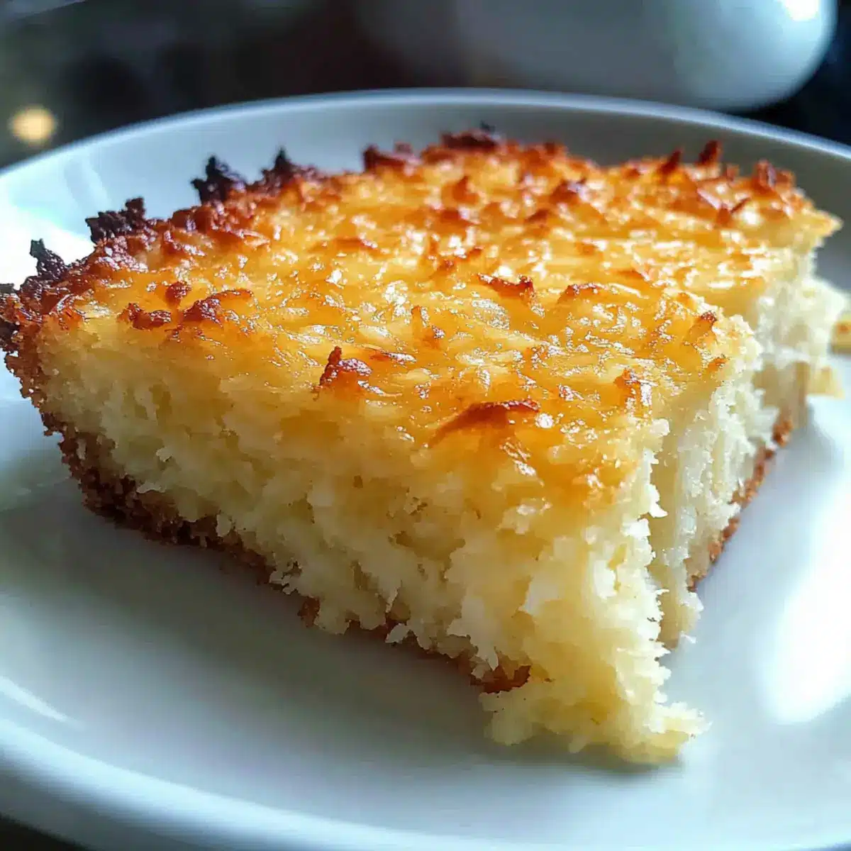 The moment I opened the oven door, the inviting aroma of warm coconut wrapped around me like a comforting hug, instantly transporting me to a sunny beach. Embracing the simplicity of this Heavenly Coconut Bake, I found it not only a delight for the senses but also a breeze to throw together. With just 15 minutes of prep, this quick dessert becomes an ideal solution for surprise guests or those lazy weekends when you crave something sweet without the fuss. Plus, it’s wonderfully customizable—think chocolate chips or crunchy nuts stirred into the mix! Ready to create a tropical escape in your kitchen? Let’s dive into this delightful Coconut Bake!