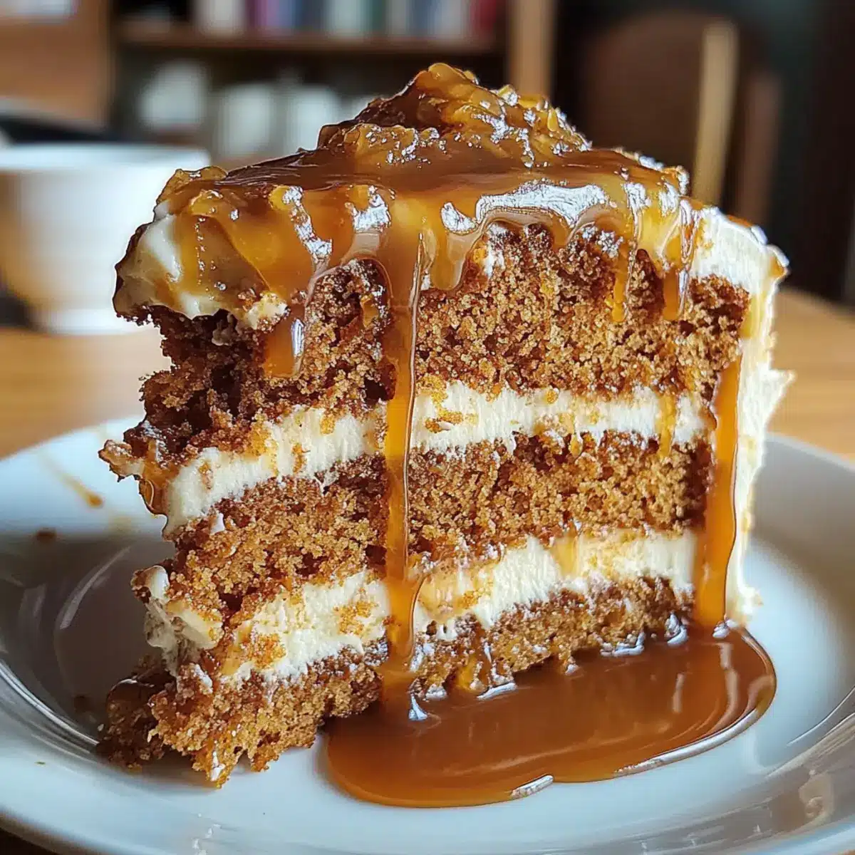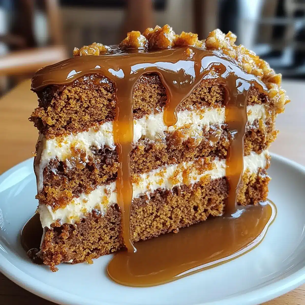 Caramel Consistency: If your caramel thickens too much, gently reheat it to reach the desired drizzling consistency before pouring it over the cake.