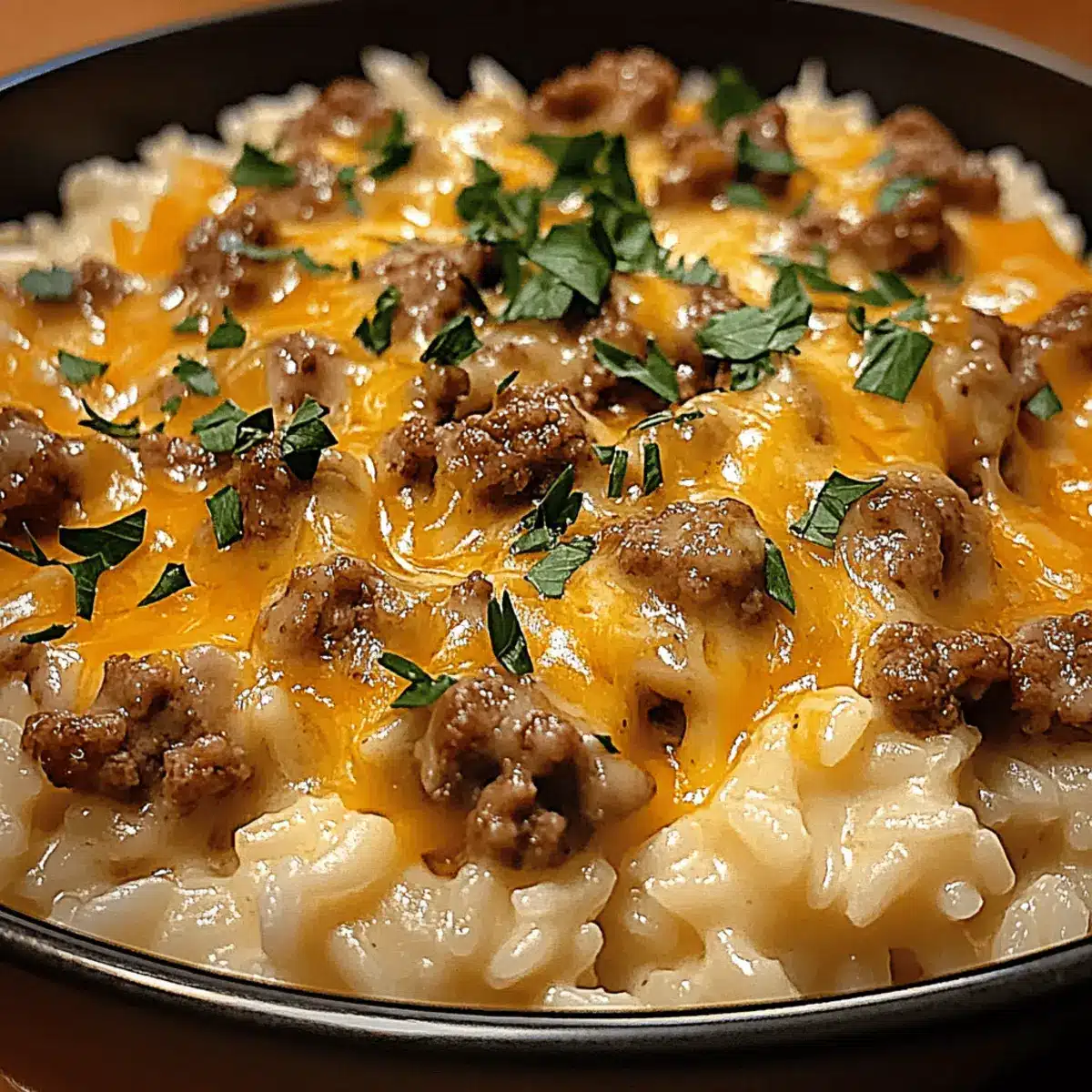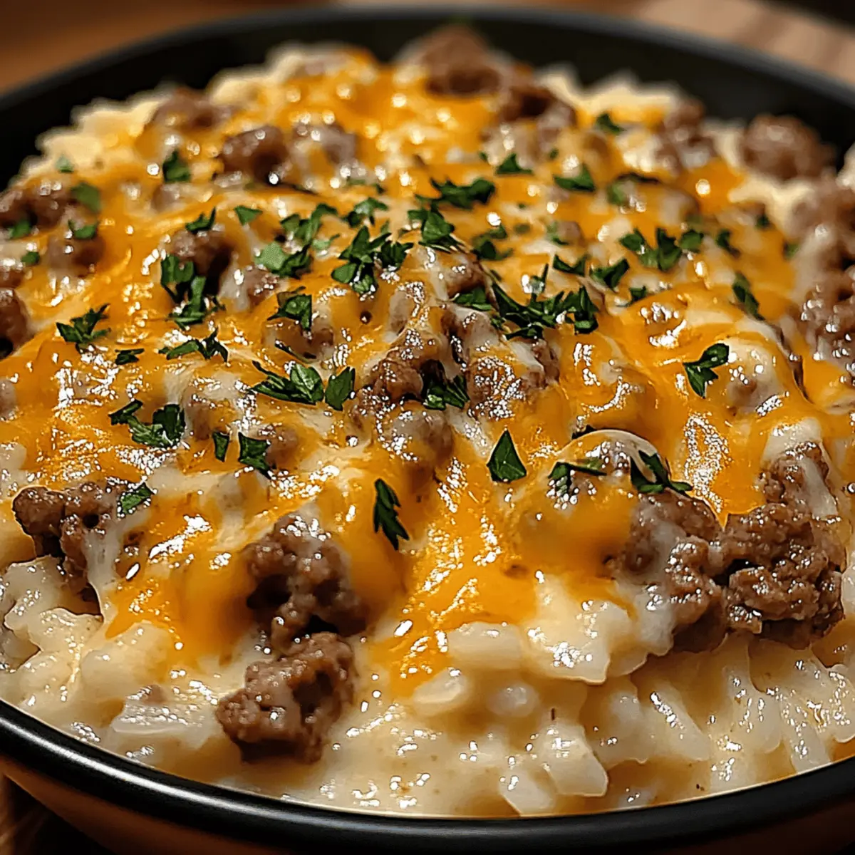 Rich, Creamy Sauce: The luscious cheddar and Parmesan sauce adds an irresistible creaminess, enveloping the beef and rice in every bite.