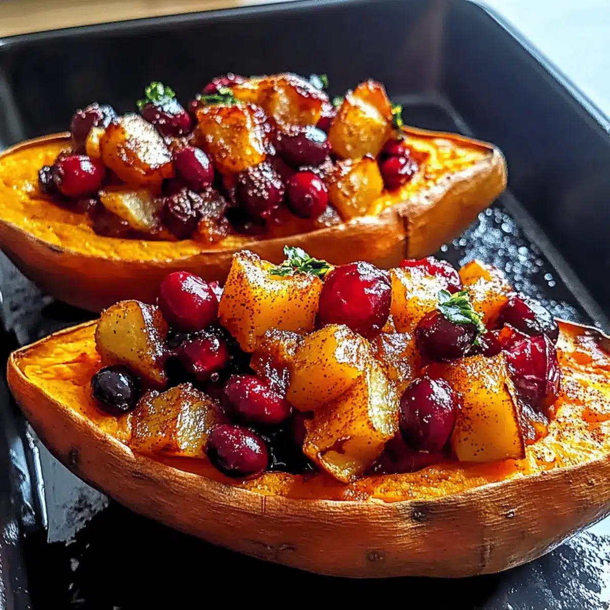 You’re all set to create an unforgettable meal with these Cranberry Apple Twice-Baked Sweet Potatoes!