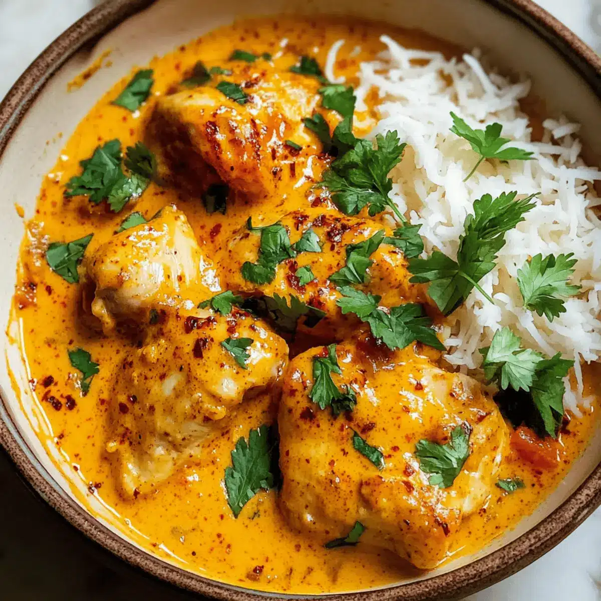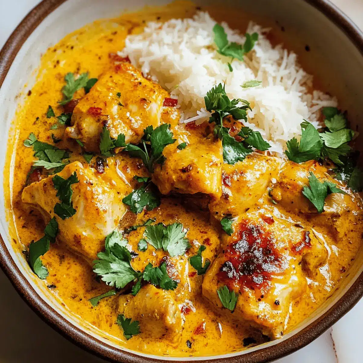 Transfer the finished dish into a serving bowl, garnishing with fresh cilantro leaves for a bright finish. Serve hot alongside fluffy basmati rice or warm naan to soak up the creamy sauce. Each spoonful of your Creamy Butternut Squash Butter Chicken promises to be a comforting delight that warms your heart and soul.