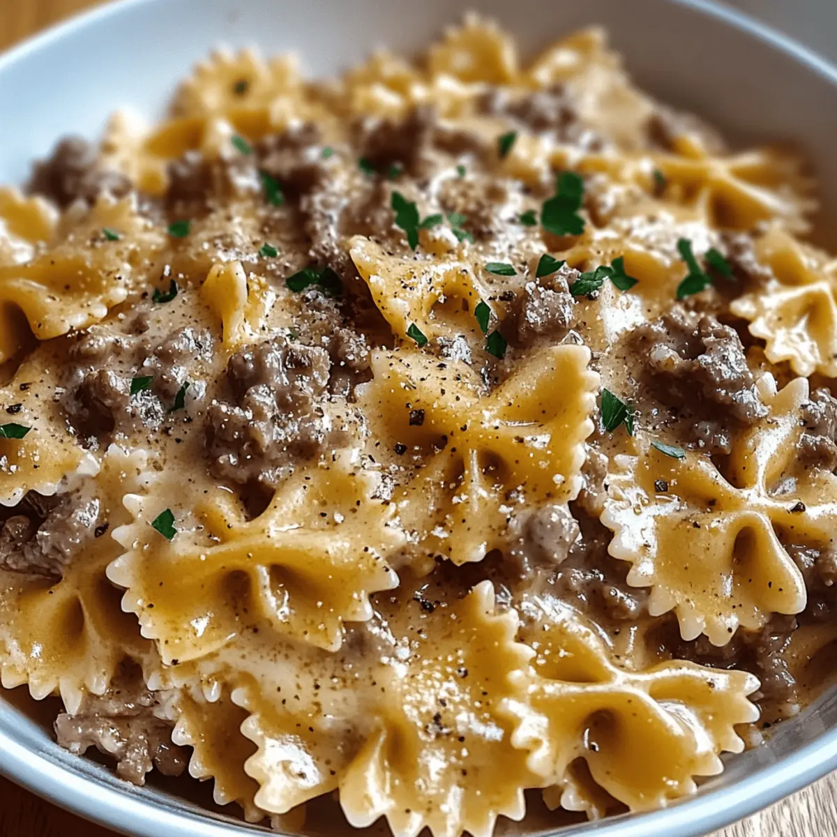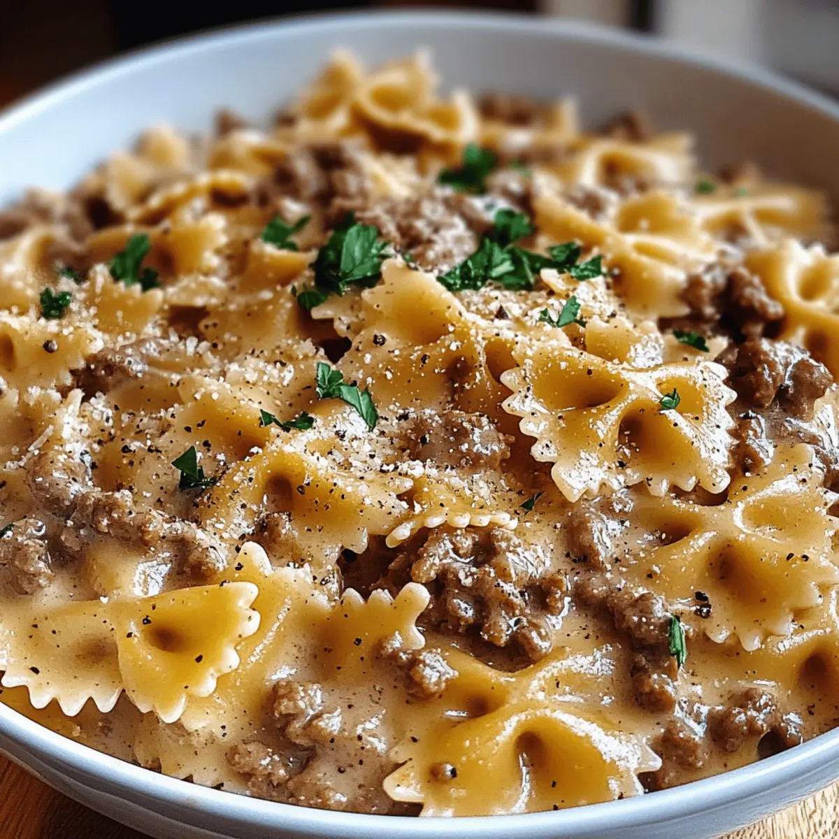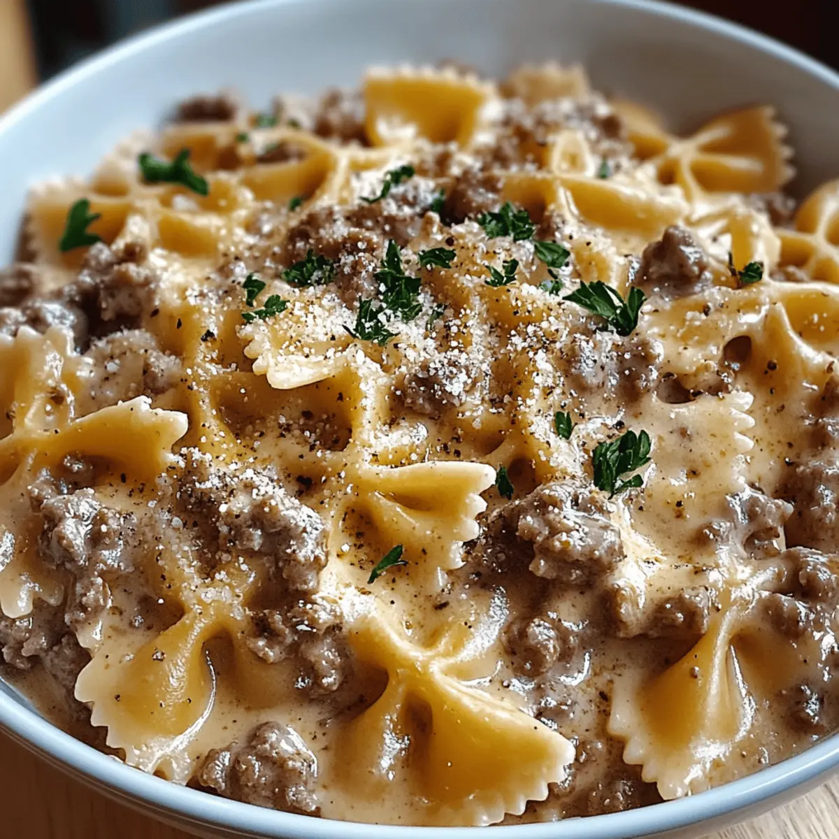 Creamy Parmesan Garlic Beef Bowtie Pasta to Savor Tonight