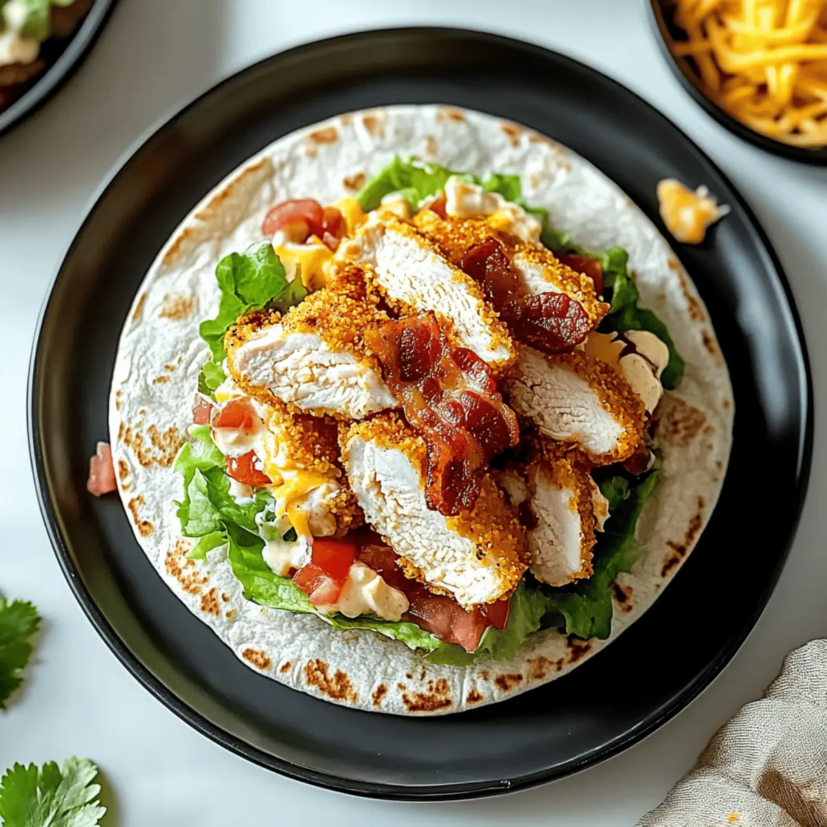 As I stood there in my kitchen, the aroma of sizzling bacon and crispy chicken filled the air, instantly whisking me away to cozy family dinners. Let me tell you, this Crispy Chicken Bacon Ranch Wrap is where comfort food meets convenience! It’s the perfect solution for anyone looking to whip up something hearty yet uncomplicated, making it ideal for beginner cooks like myself. Imagine golden-brown chicken strips, savory bacon, fresh lettuce, and juicy tomatoes all wrapped snugly in a soft tortilla—this customizable delight checks all the boxes for a delightful lunch or dinner. Plus, with quick prep, you’ll have more time to savor each delicious bite. So, are you ready to take your taste buds on a flavor-packed adventure with this wrap?