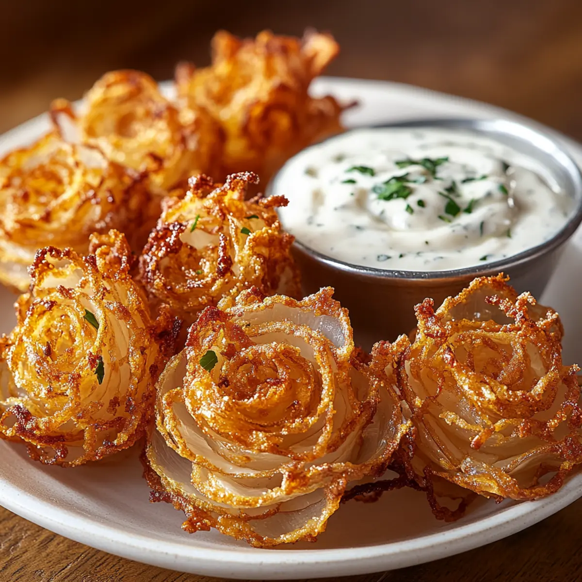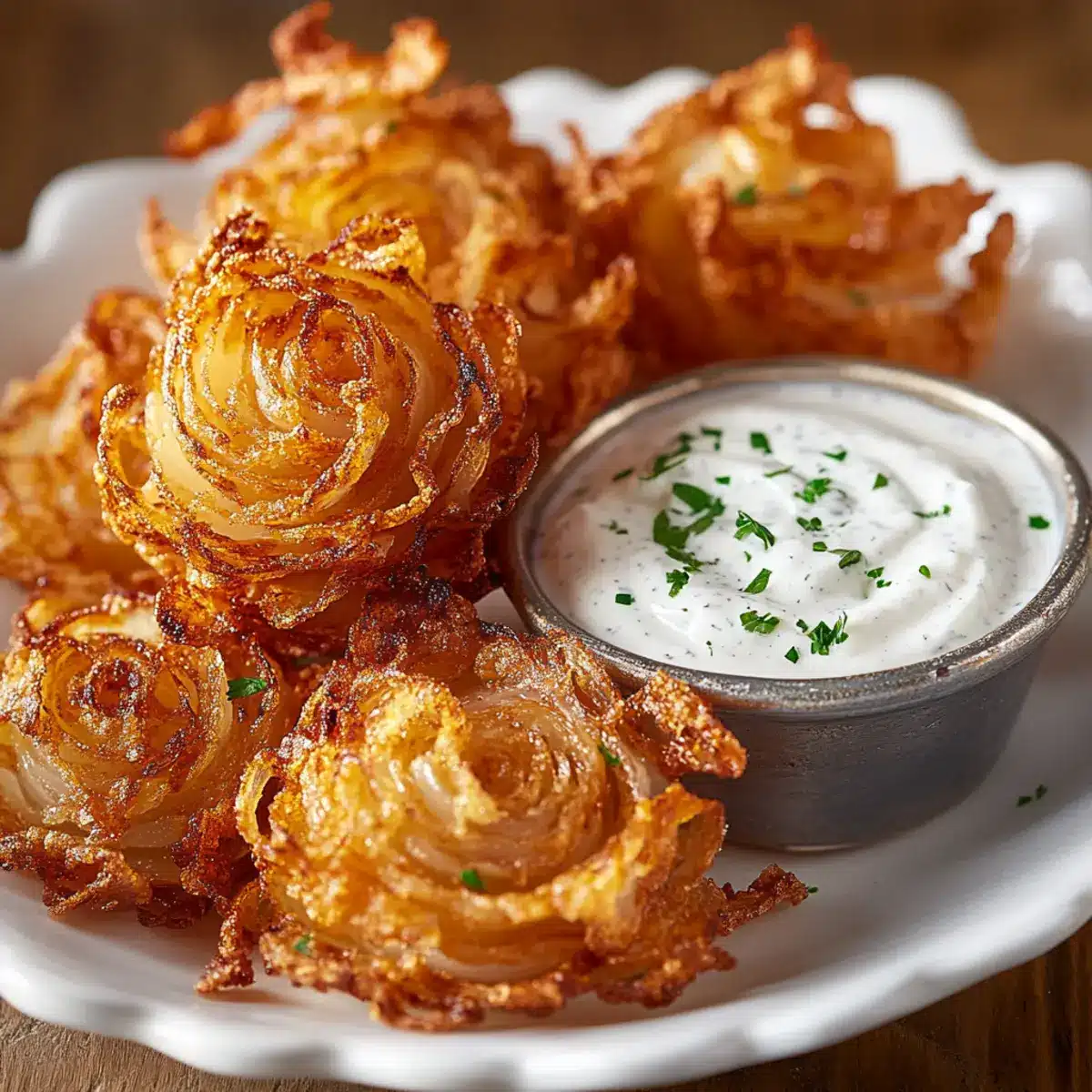 Crispy Mini Bloomin’ Onions with Creamy Ranch Dip Delight