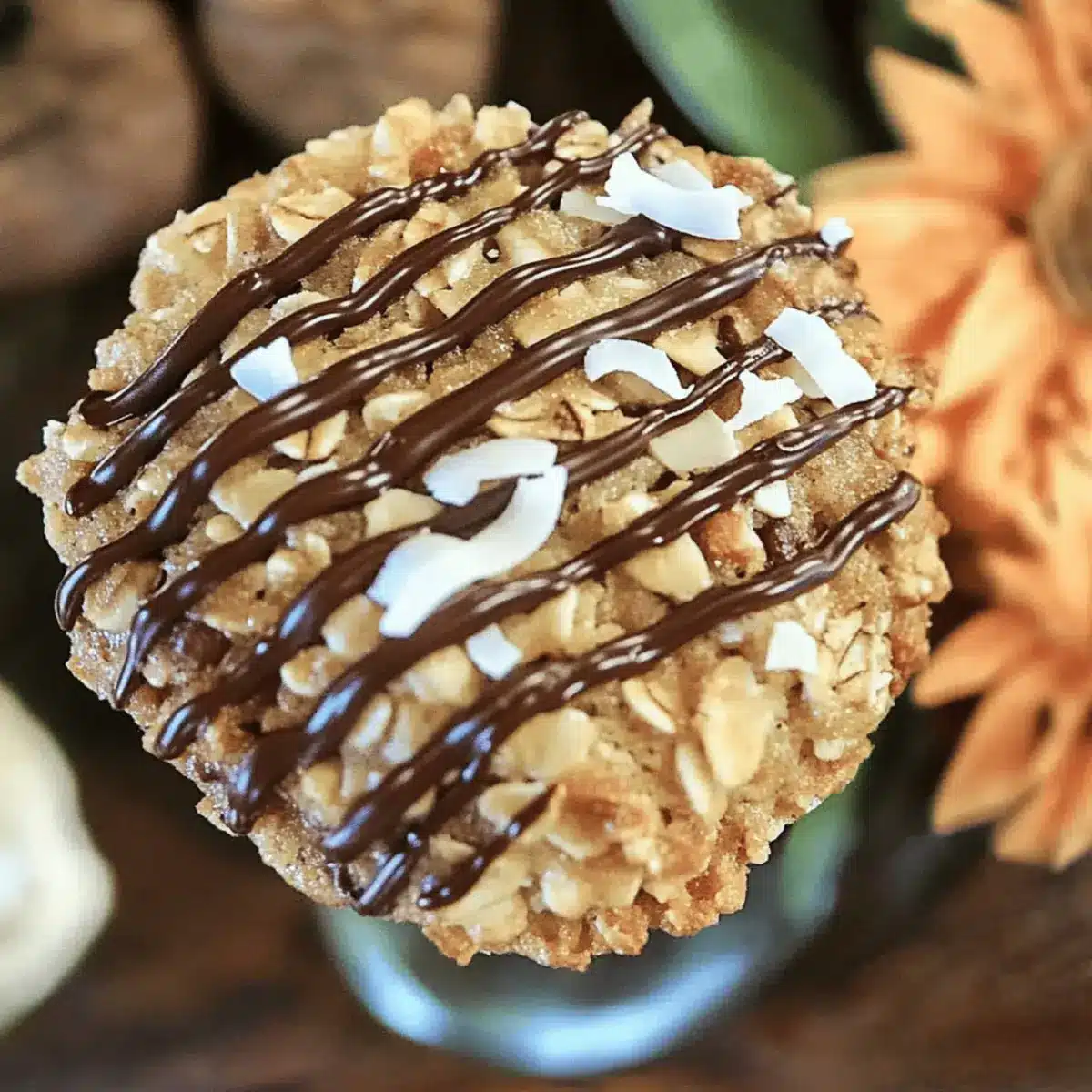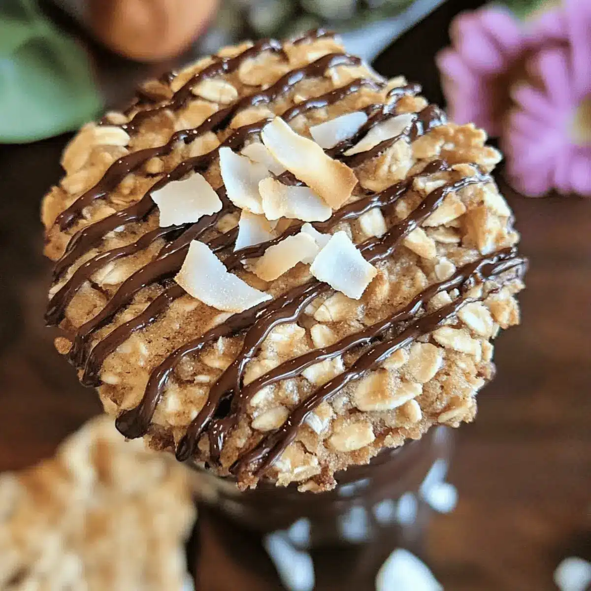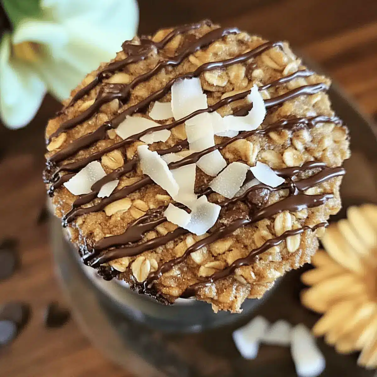 Crispy Oatmeal Cookies with Toasted Coconut and Chocolate Drizzle