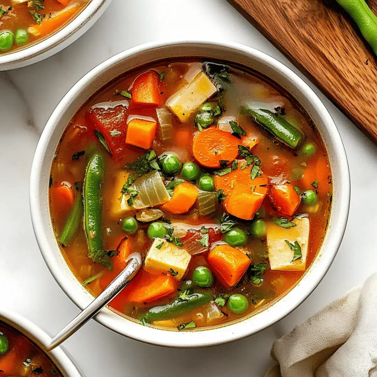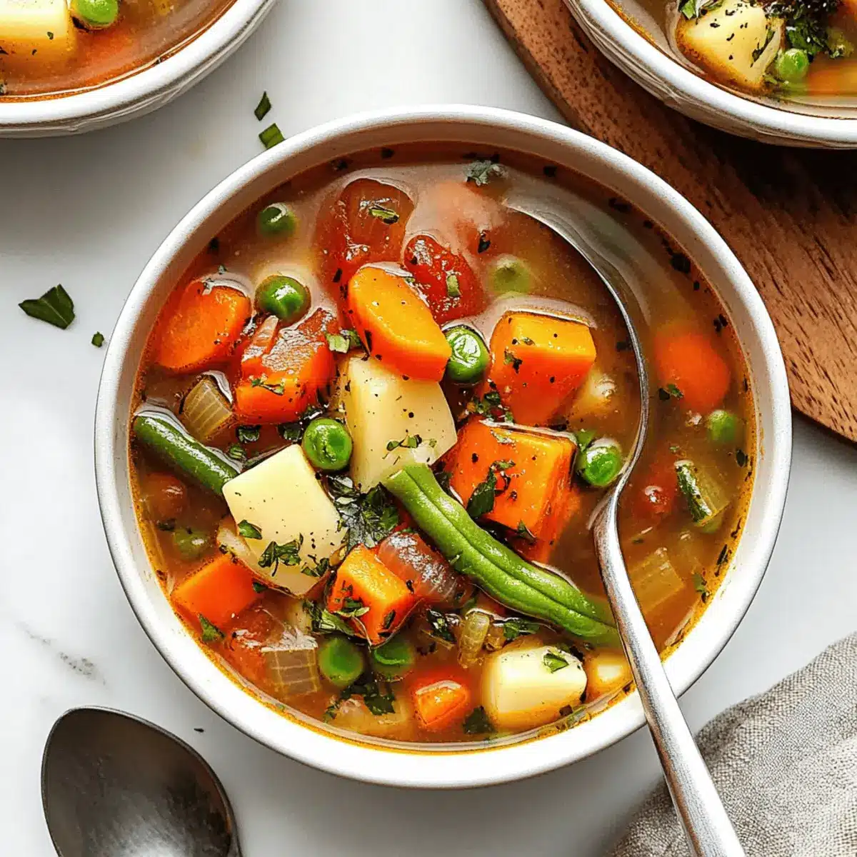 As the brisk air wraps around me, I can’t help but crave a warm bowl of comfort. That’s when I turn to my Easy Vegetable Soup—a recipe that perfectly balances the heartiness and lightness we all seek in a meal. This delightful dish is not just vegetarian and gluten-free; it’s also a canvas for your culinary creativity. With a rainbow of fresh or frozen vegetables at your fingertips, this soup can be customized to fit any palate or season. You’ll love how effortlessly it comes together, making it a quick weeknight staple, yet it’s also filling enough to satisfy everyone at your table. What fresh ingredients will you toss in to make this comforting bowl your own?