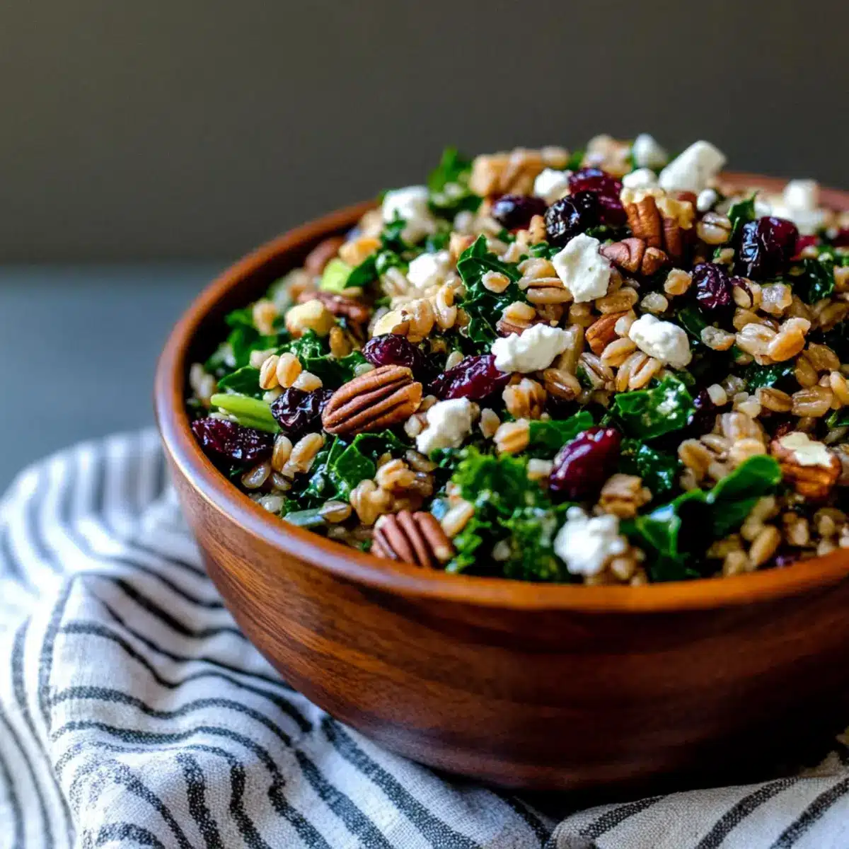 This Fall Farro Salad with Kale, Cranberries, Pecans, and Goat Cheese is not just a dish; it’s a celebration of the season’s best flavors!