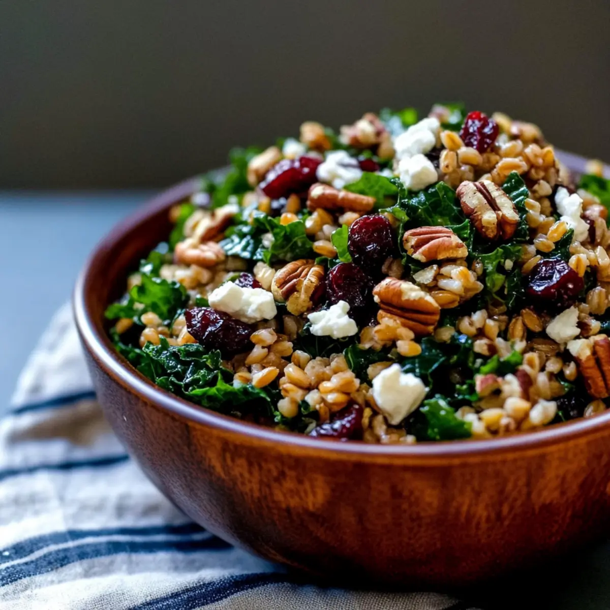 Fall Farro Salad with Kale, Cranberries, Pecans & Goat Cheese Delight