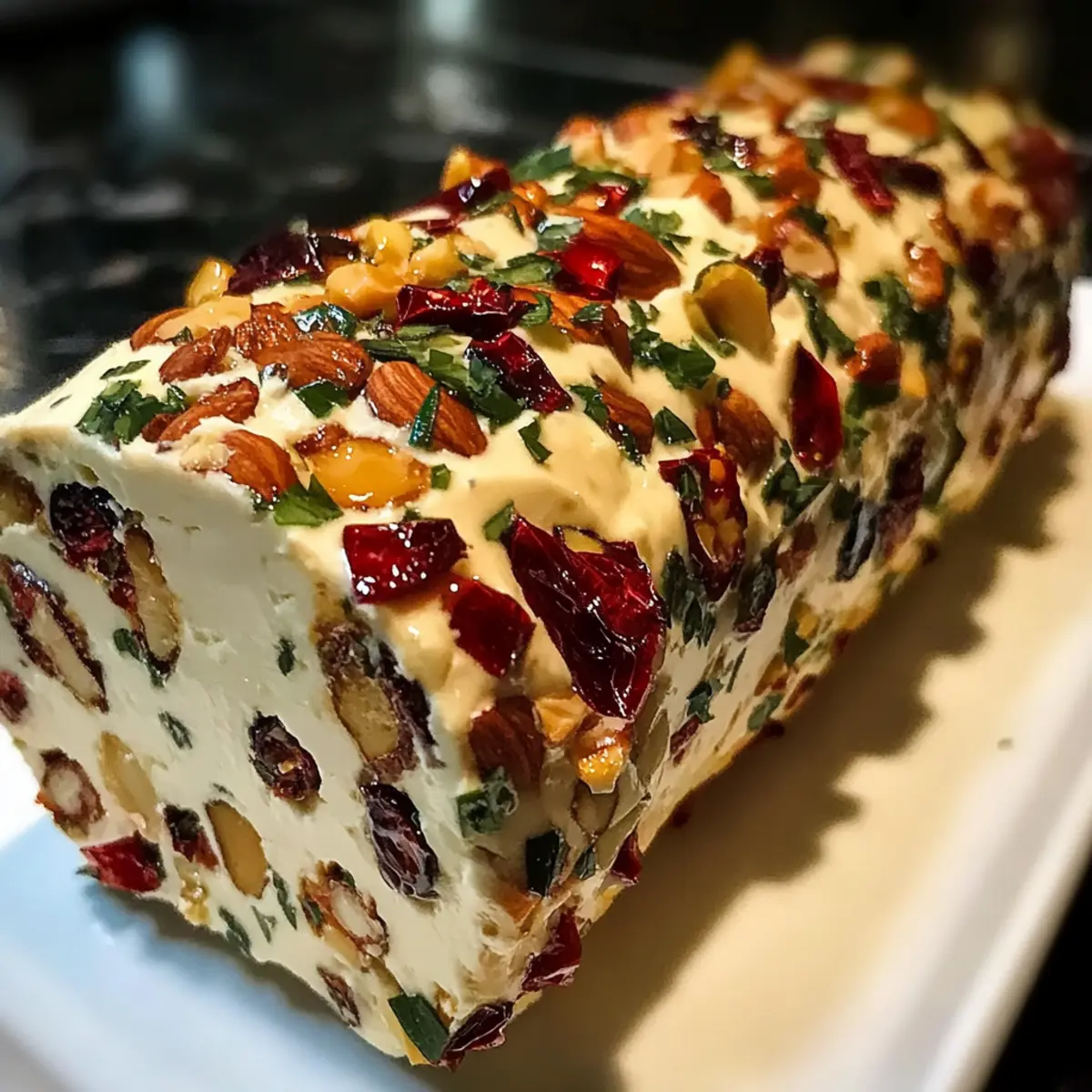 - Coat the log with toasted nuts and slice into rounds before serving.