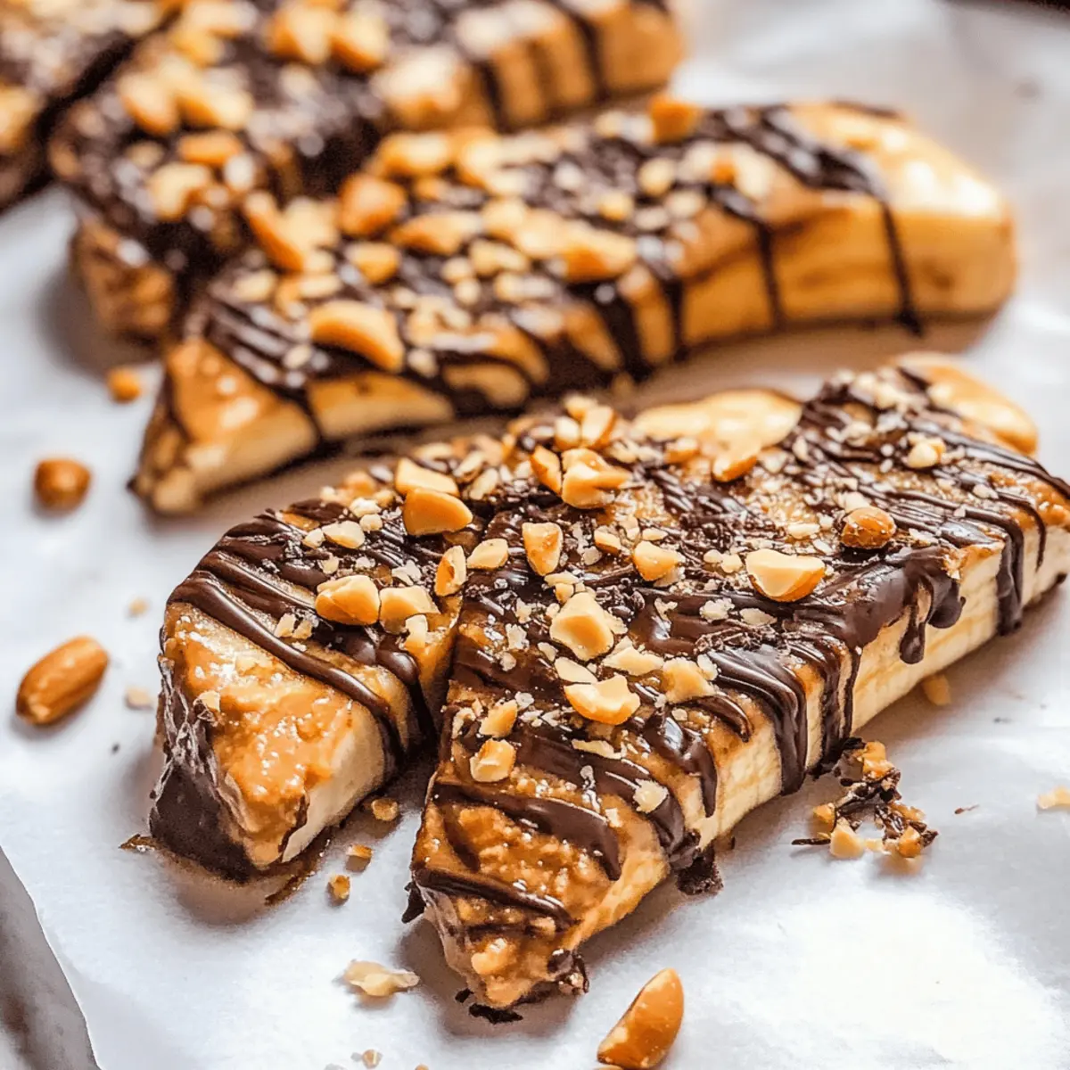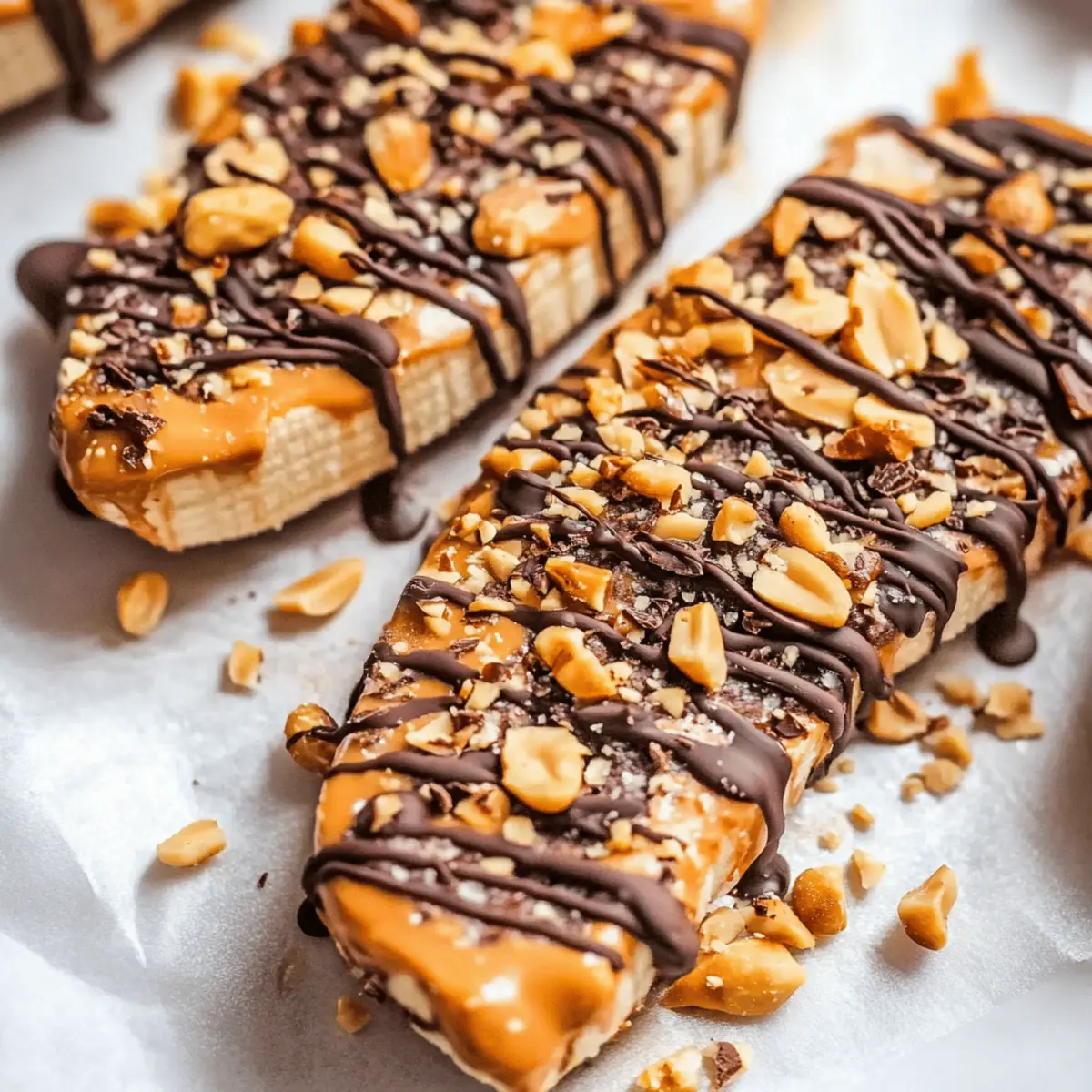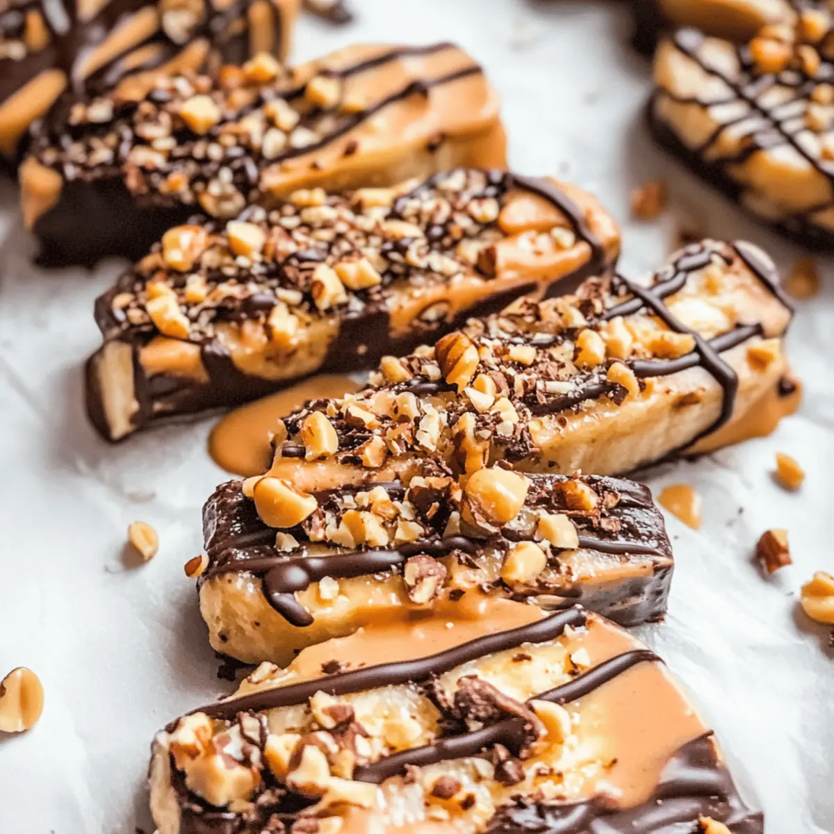 Spread a generous layer of creamy peanut butter over each banana slice, ensuring each piece is fully covered for rich flavor and indulgence. Next, sprinkle the slices with a handful of chopped peanuts and a tiny pinch of sea salt. This will enhance the sweetness of the bananas and give that delightful crunch in every bite of your Frozen Banana Snickers.