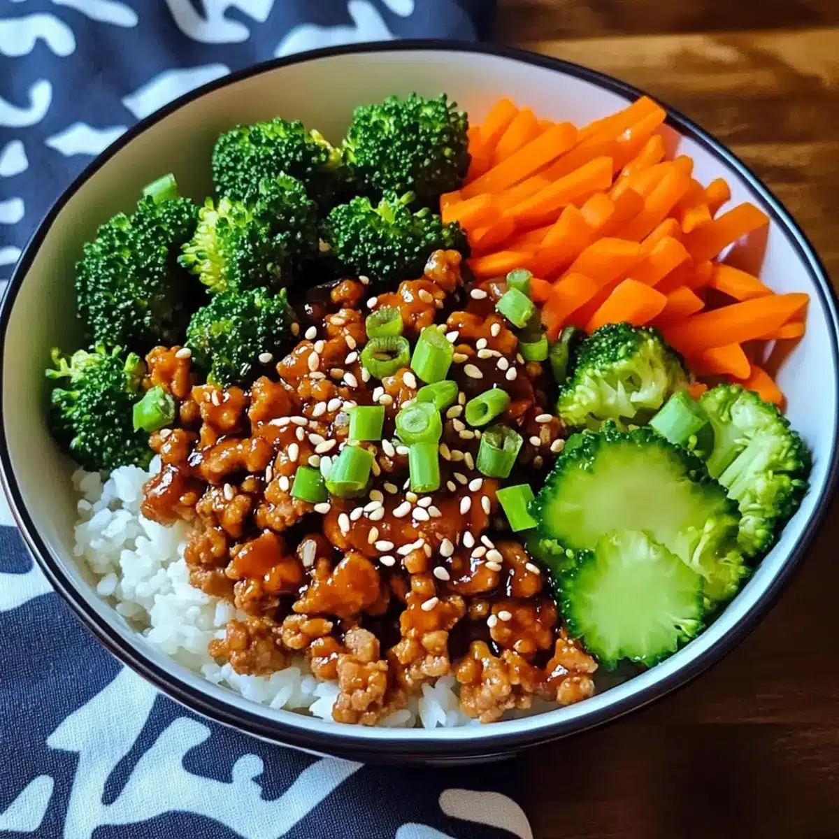 Prepare your bowls with warm cooked rice as the base. Spoon the savory turkey and vegetable mixture over the rice, allowing the glossy teriyaki sauce to drizzle down. Garnish with chopped green onions and a sprinkle of toasted sesame seeds for added flavor and texture. Enjoy the delightful balance of this Healthy Teriyaki Turkey Rice Bowl!