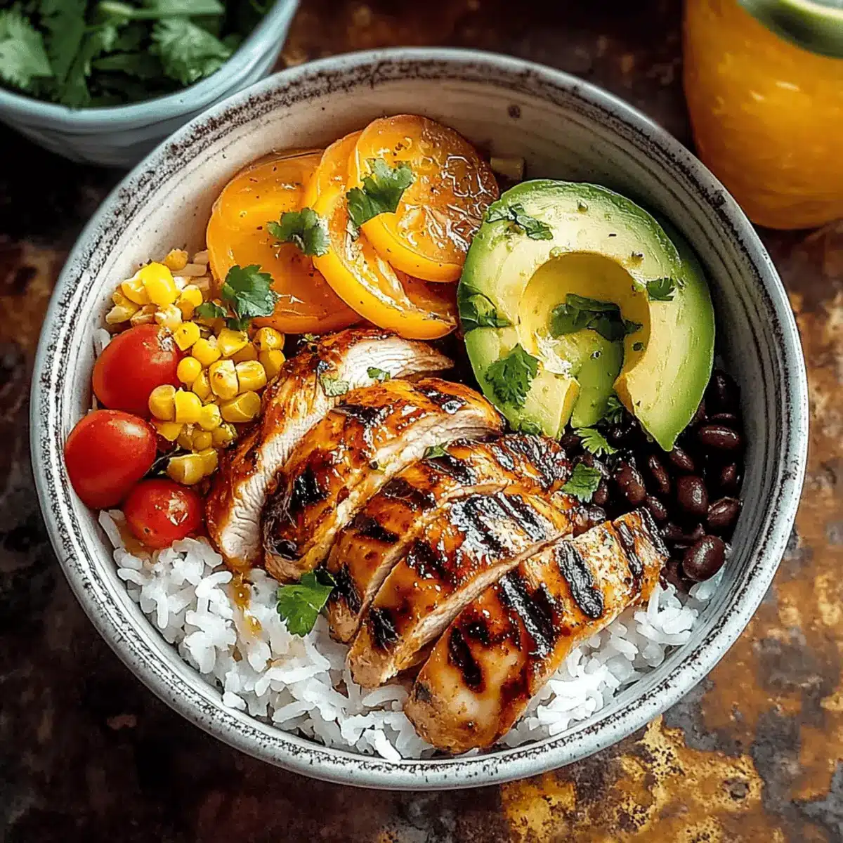 Begin by serving a generous portion of the fluffy rice as the base in large bowls. Top the rice with the sliced chicken, followed by the corn and black bean mixture. Add diced avocado for creaminess and a pop of color that complements the Honey Lime Chicken & Rice Bowls beautifully.