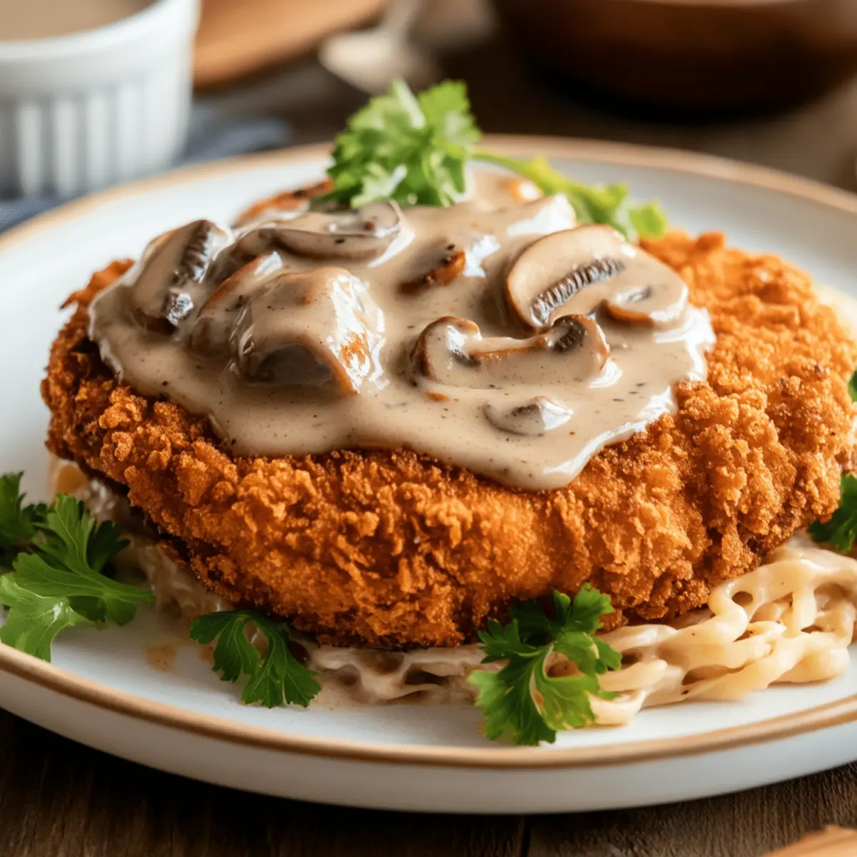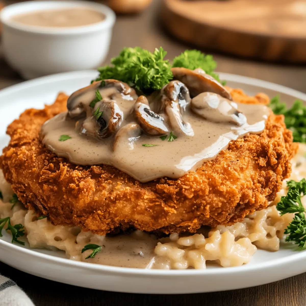 Once the steak is frying, keep a close eye on it. In another pan, sauté the mushrooms in a bit of oil until they’re tender, about 5 minutes. Add in heavy cream, letting it simmer until it thickens, usually around 3-4 minutes. Season to your liking, and this creamy mushroom gravy will complement your Keto Chicken Fried Steak beautifully.