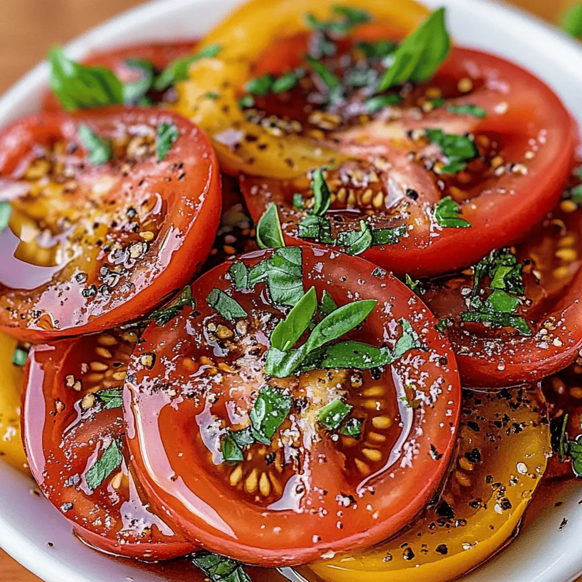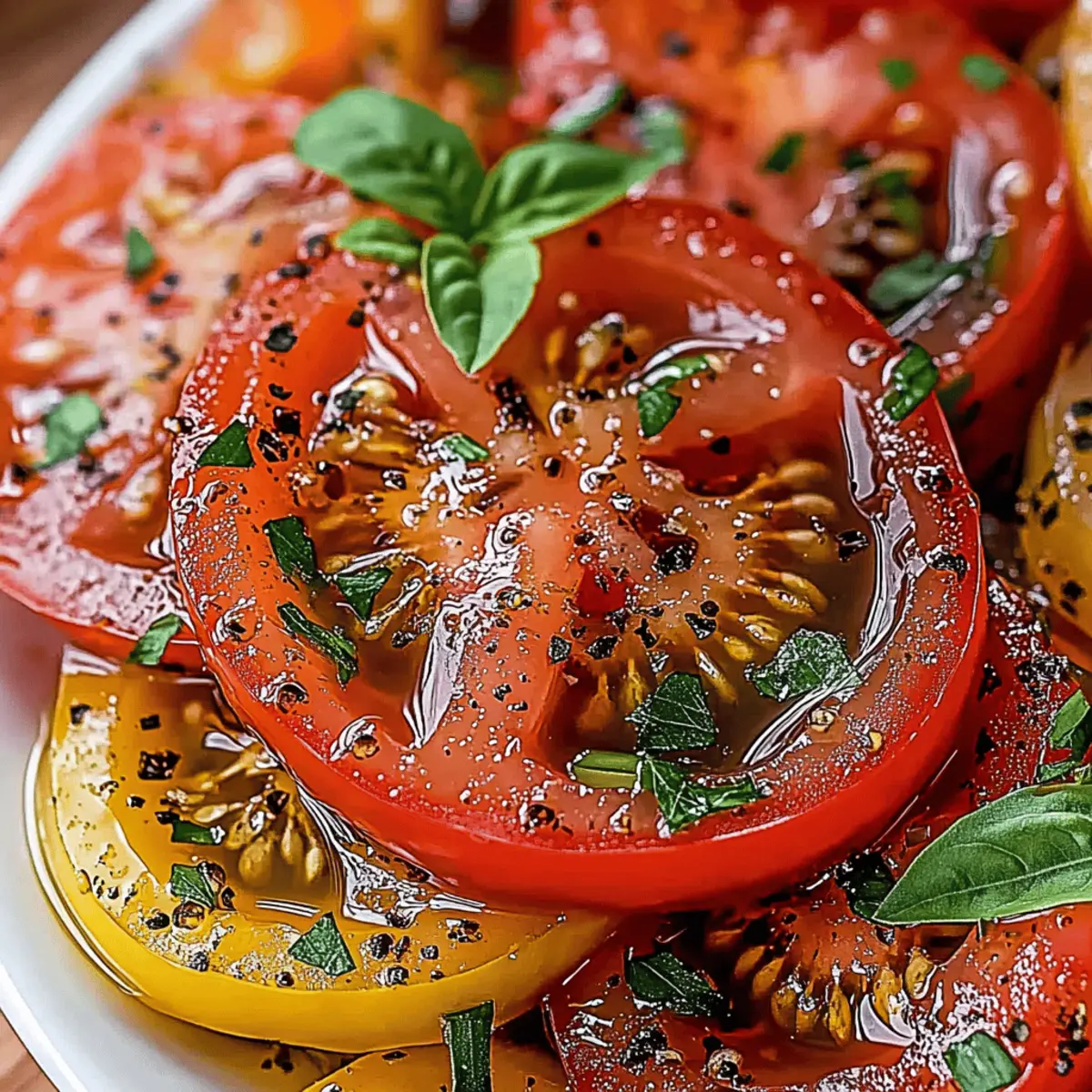 Elevate your meals effortlessly with these zesty marinated tomatoes that bring a touch of summer to your table!