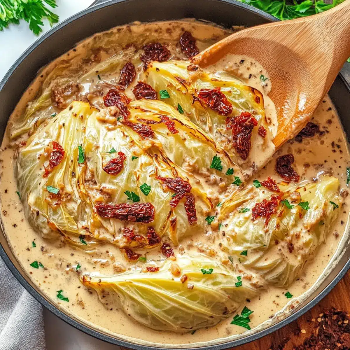 As I sat at my kitchen table, savoring the sweet aroma of sautéed garlic and caramelized cabbage, I couldn’t help but think, “This is love on a plate.” Allow me to introduce you to my go-to dish, Marry Me Melting Cabbage with Creamy Tuscan Sauce. This delightful recipe transforms an ordinary head of cabbage into a remarkable piece of comfort food, enveloped in a rich, creamy sauce that’s perfect for satisfying your cravings without the fuss. The great news? It’s easy to prepare, making it an excellent choice for both impressing guests and enjoying a cozy night in. With variations that cater to every palate, this dish reminds us that even the simplest ingredients can create something extraordinary. Are you ready to discover the secret to this heavenly dish? Let’s get cooking!