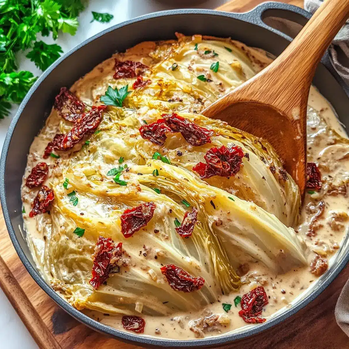 Once done, allow your dish to rest for a few minutes before serving. Garnish with freshly chopped parsley for a pop of color and freshness. Serve your Marry Me Melting Cabbage warm, and watch as everyone falls in love with its creamy deliciousness!