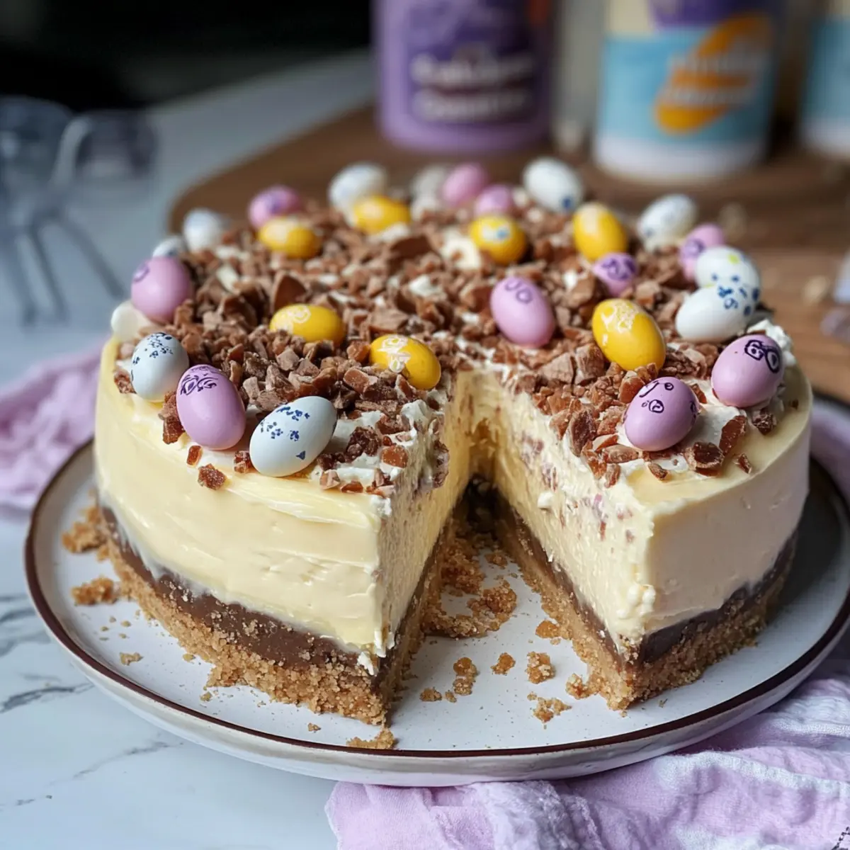 Flavored Cream Cheese: Try using flavored cream cheese like strawberry or lemon for a fresh twist. This is an easy way to add a unique taste to your cheesecake that pairs beautifully with the mini eggs.