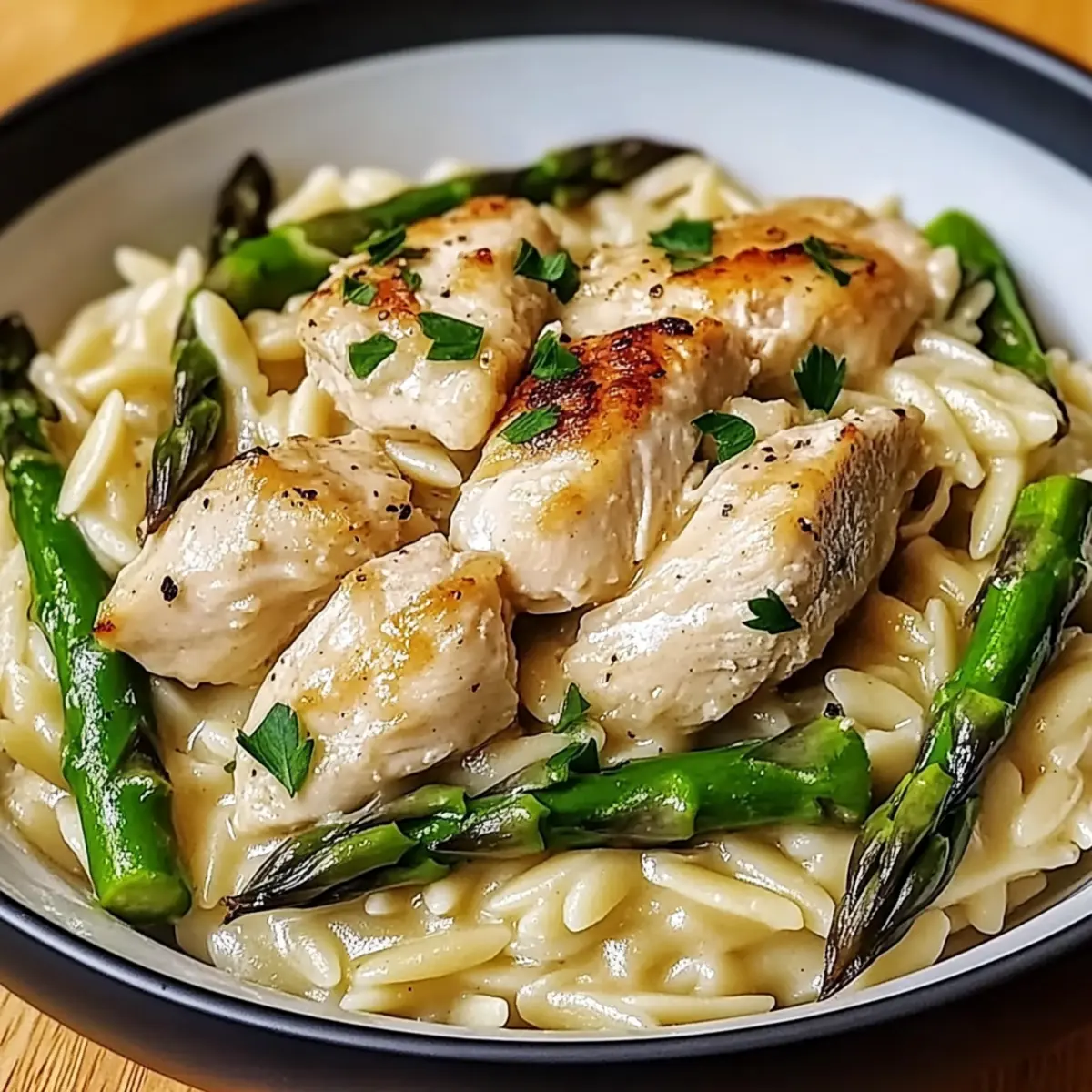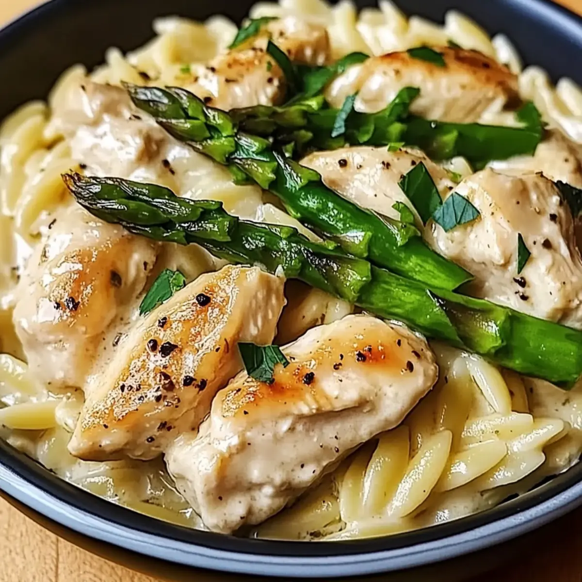 Creamy Parmesan Orzo with Chicken and Asparagus Bliss