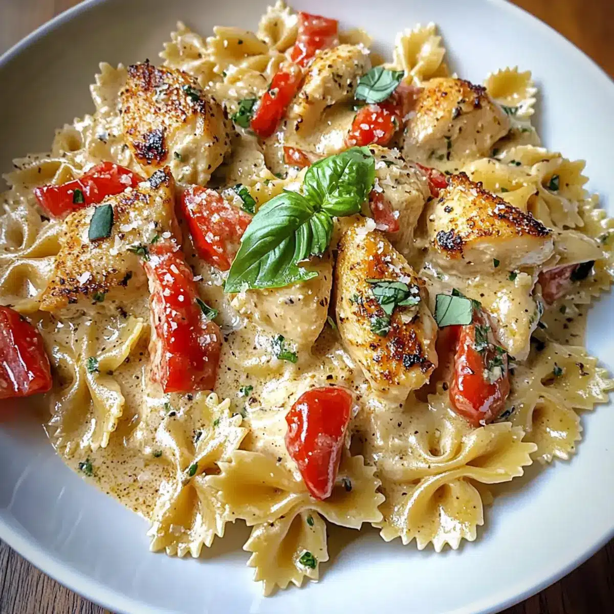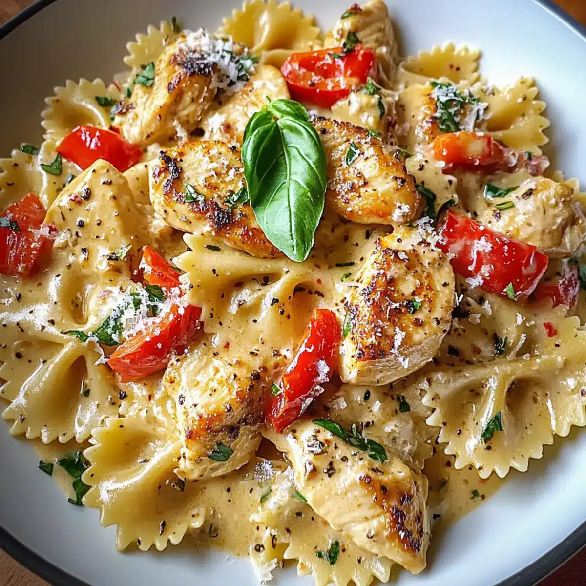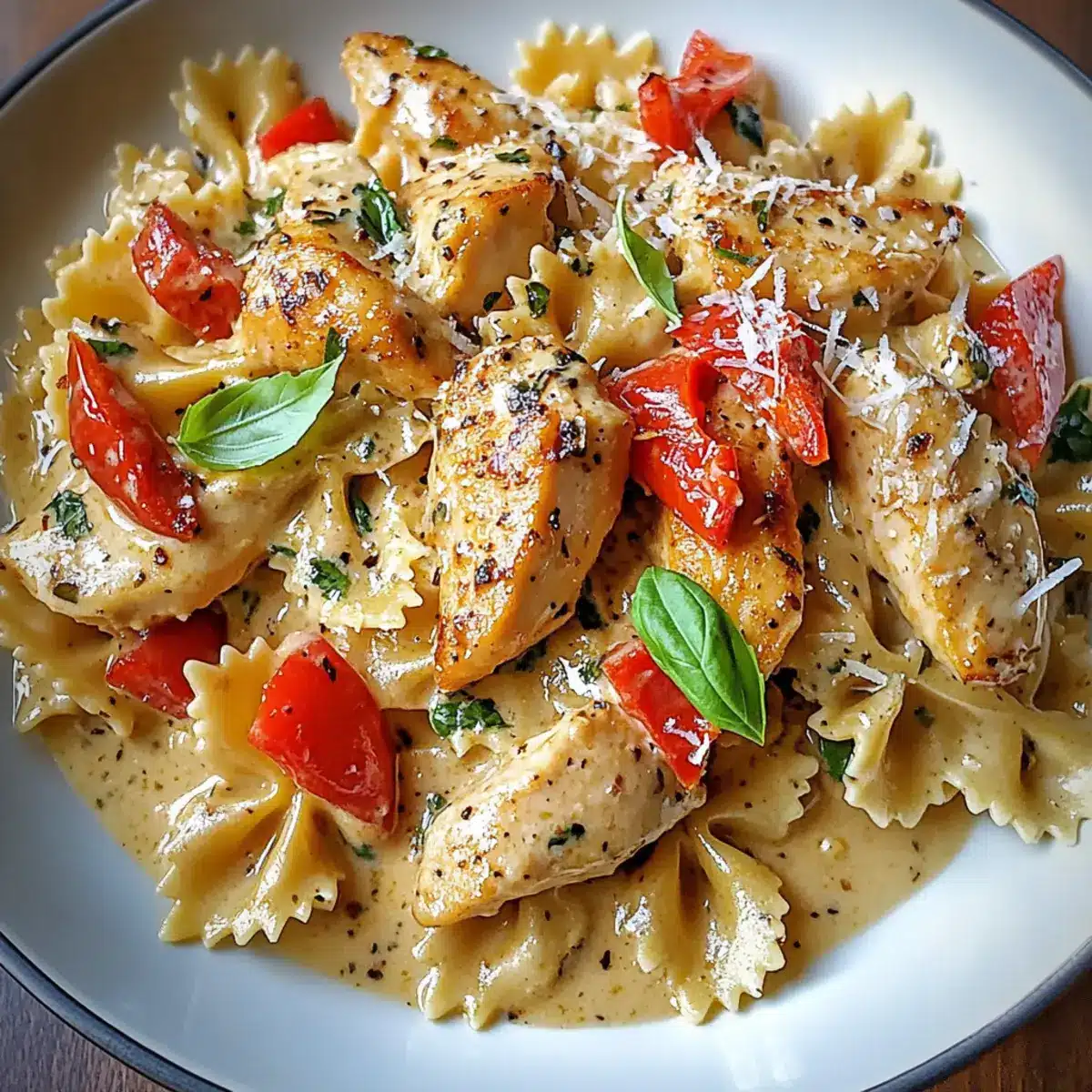 Parmesan Roasted Red Pepper Chicken Bowties in Garlic Cream Bliss