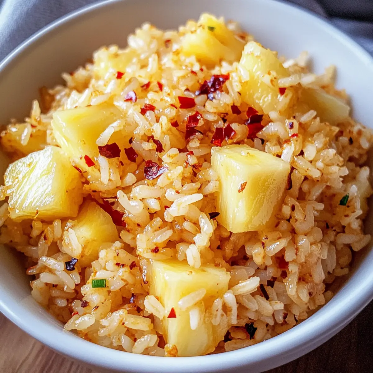 Tropical Escape: Each bite of this Pineapple Rice transports you to a sun-soaked paradise, combining the sweetness of fresh pineapple with spicy sriracha for a unique flavor explosion.