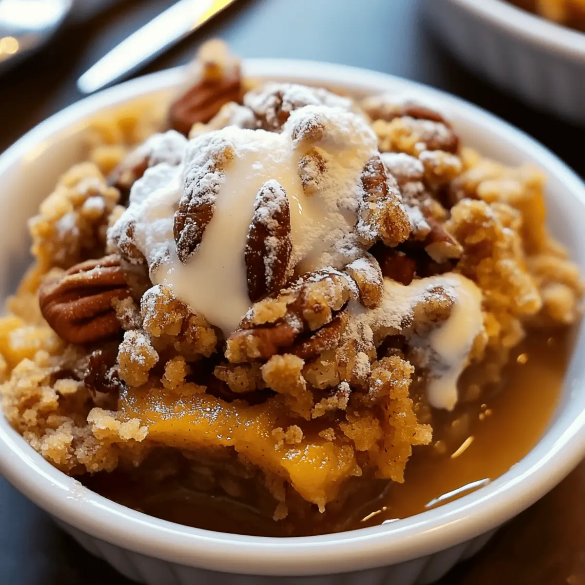 Caramel Sauce: A warm drizzle of caramel sauce adds decadence to each slice, making your Pumpkin Pecan Cobbler a truly indulgent treat.