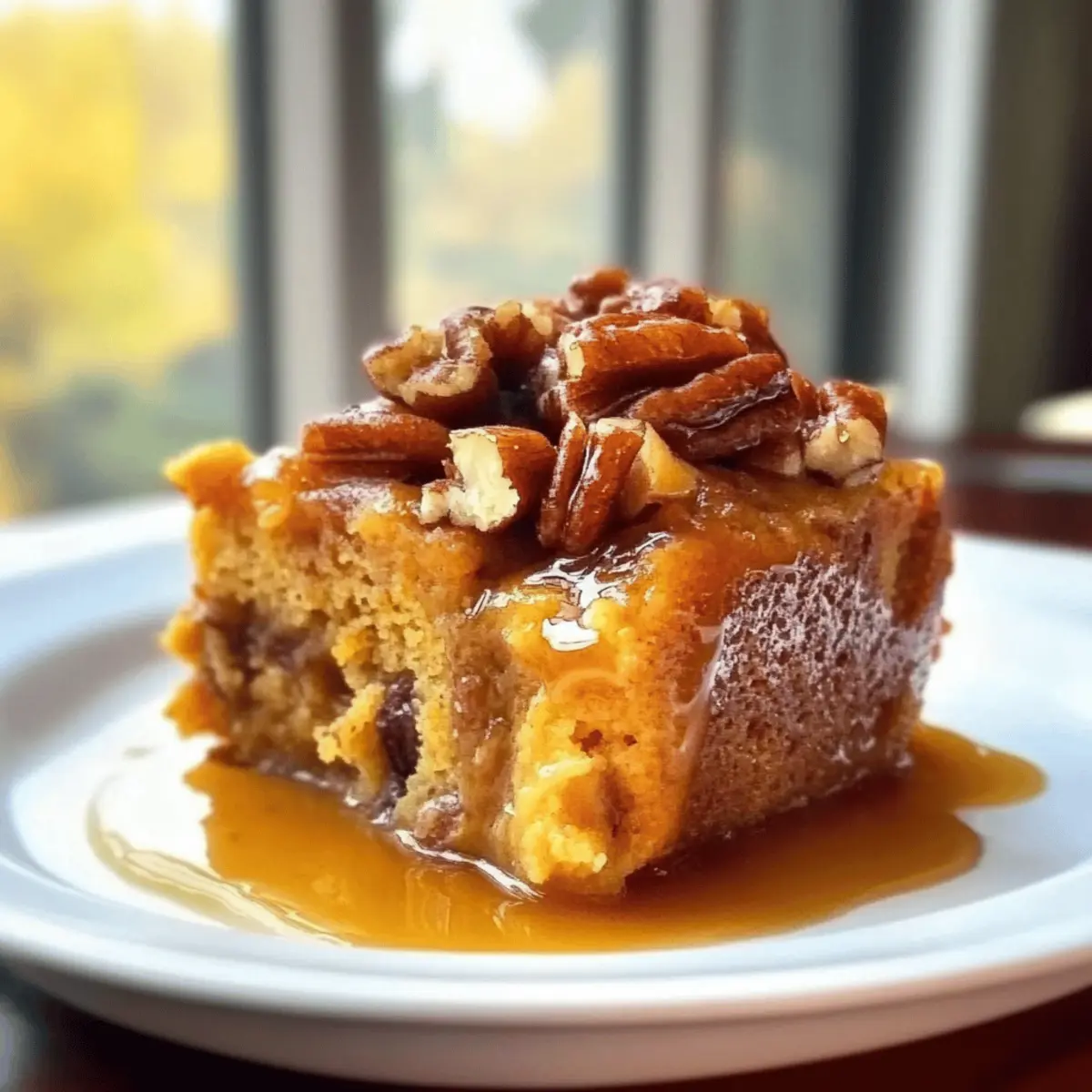 When the pudding is perfectly baked, remove it from the oven and let it cool for about 10-15 minutes. Drizzle the warm praline sauce generously over the top just before serving. The sweet, crunchy topping against the creamy custard gives this Pumpkin Praline Bread Pudding an irresistible finish that is simply unforgettable!