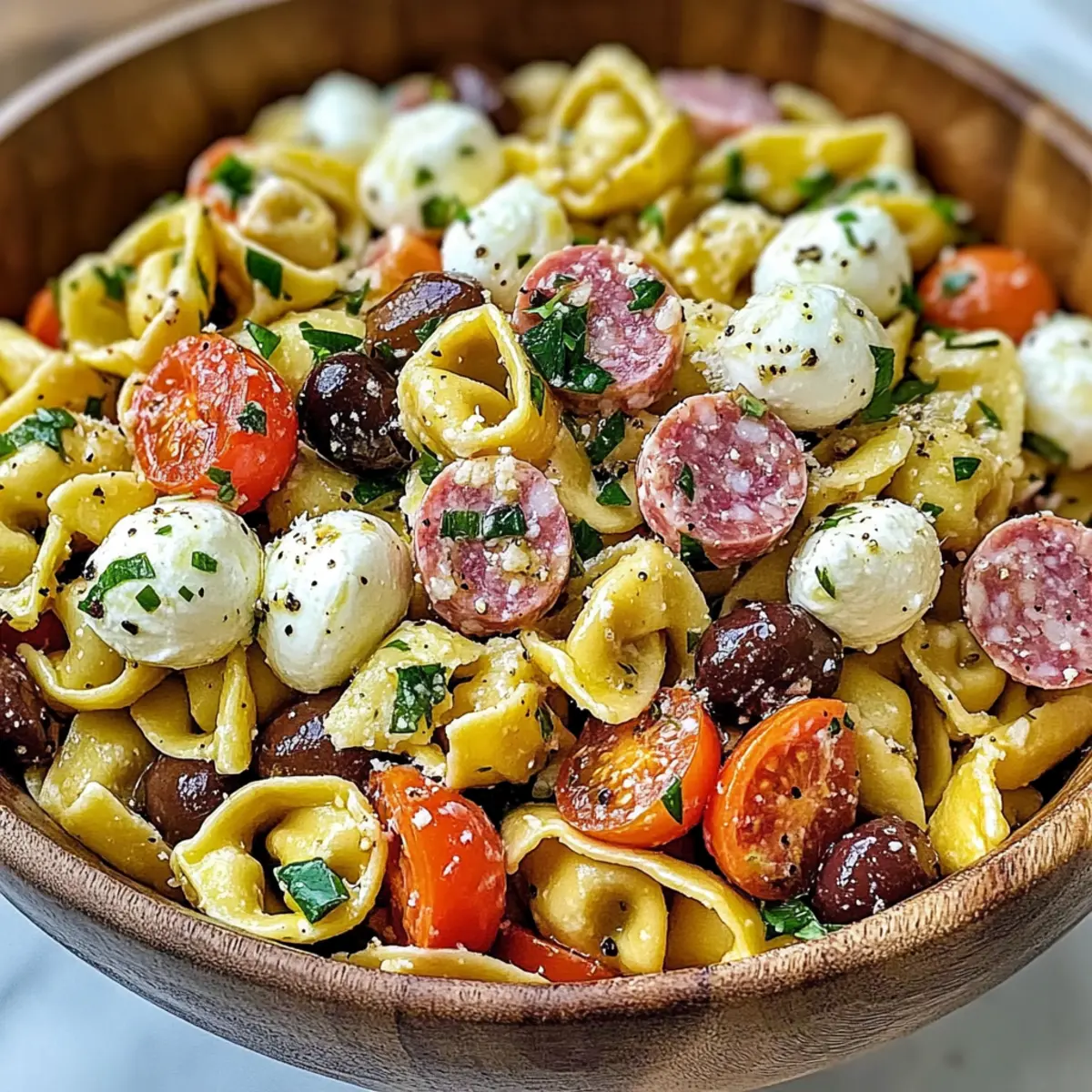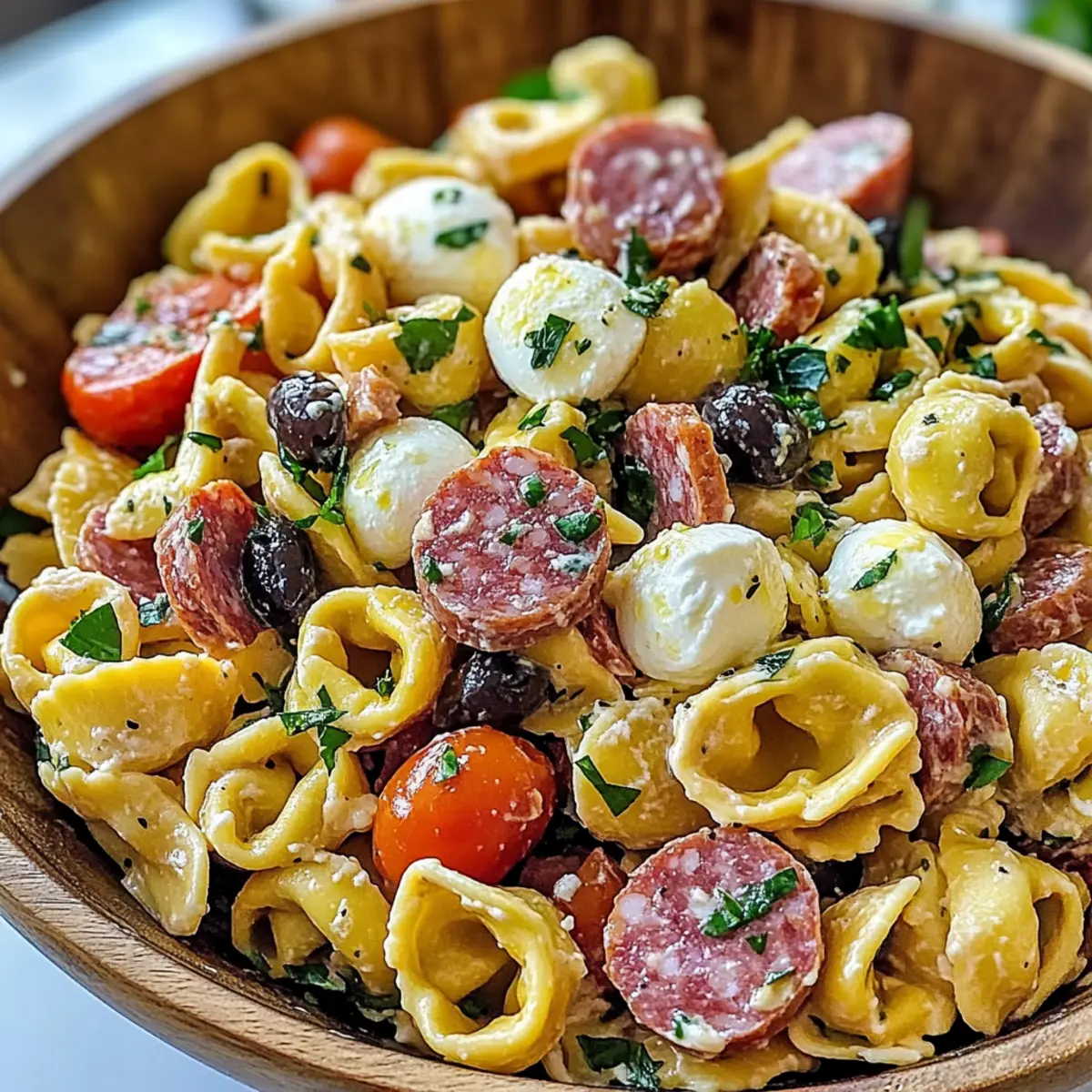 Flavor Explosion: This salad combines zesty salami, creamy mozzarella, and tender tortellini, offering a delightful burst of flavors in every bite.