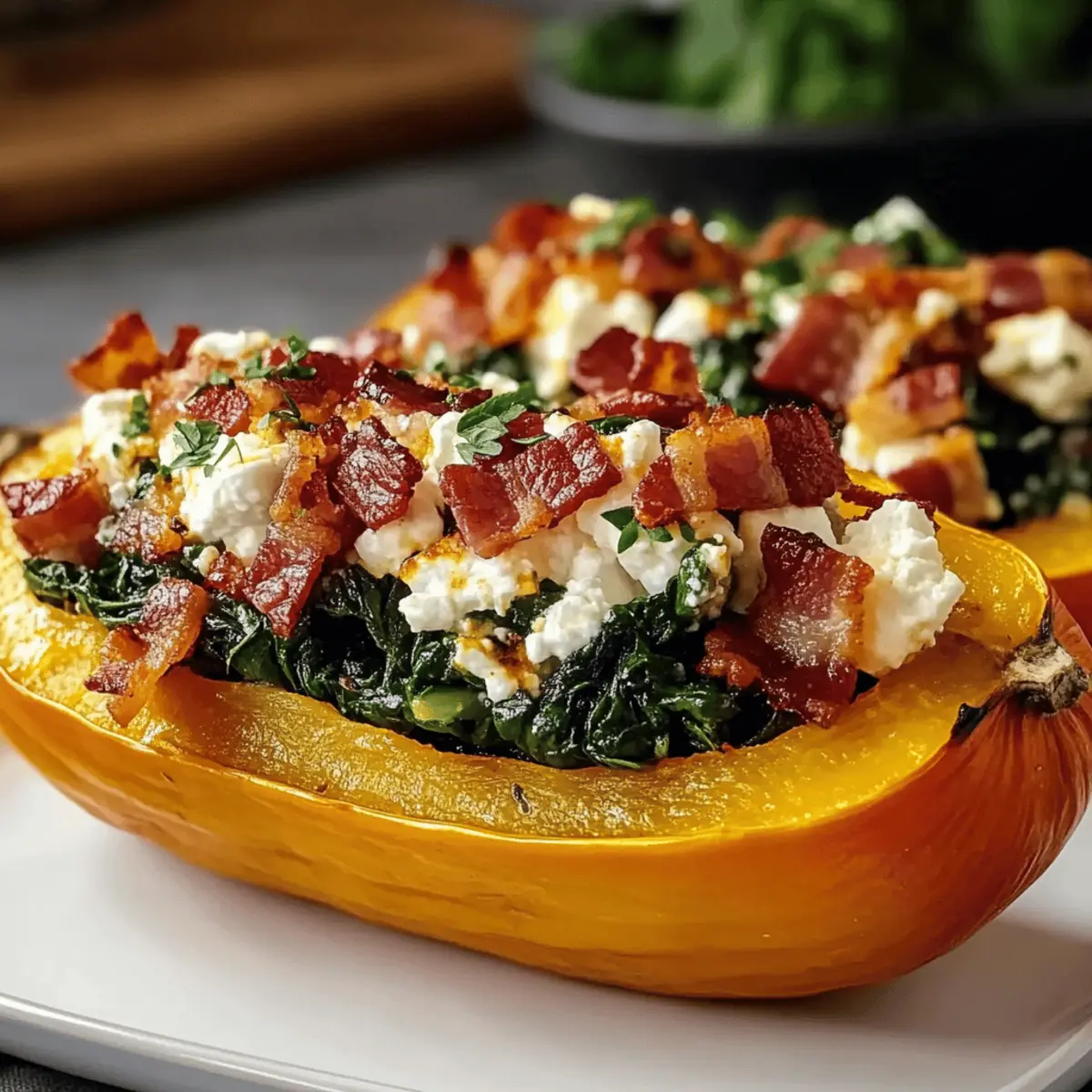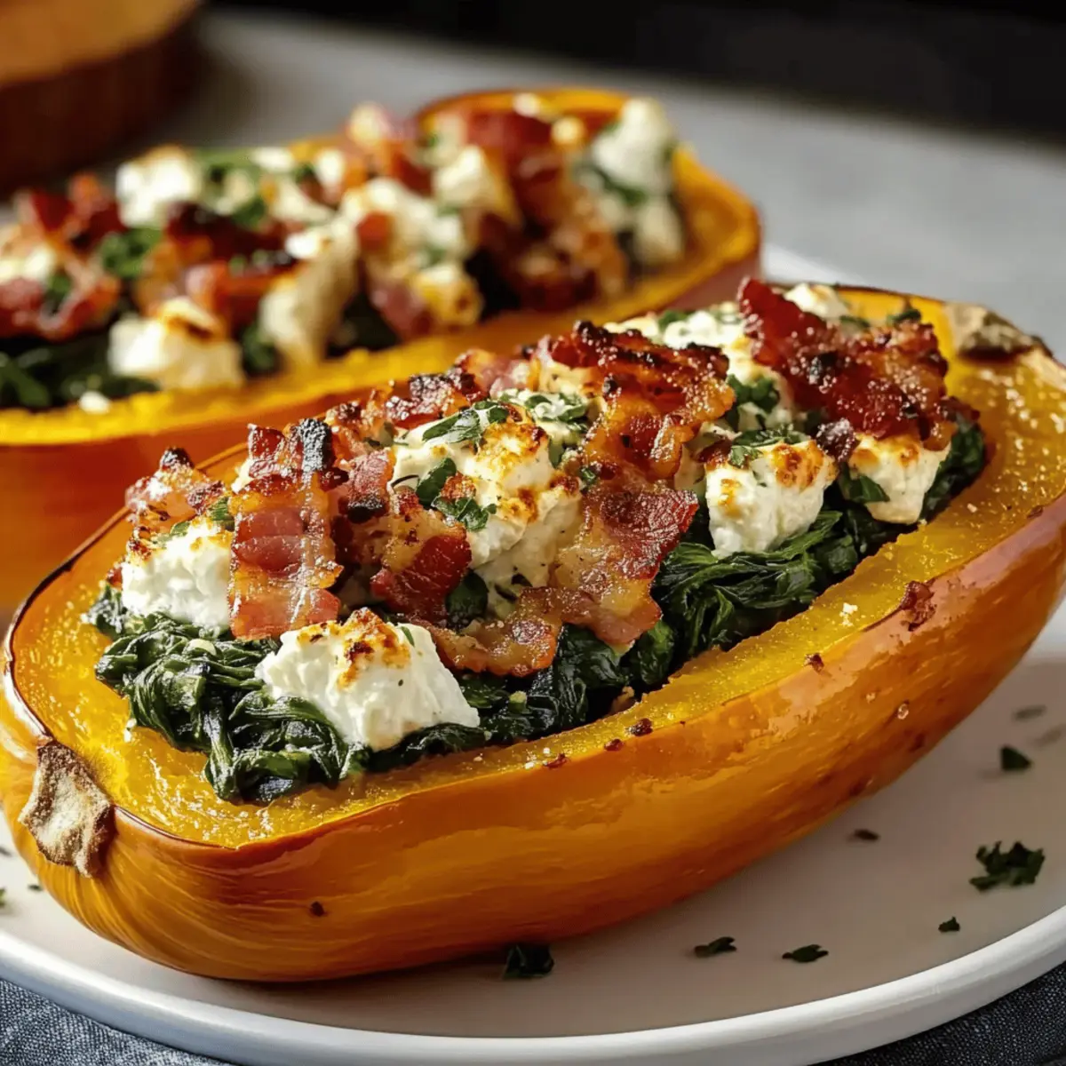 Savory Stuffed Butternut Squash w Feta Spinach Bacon Bliss