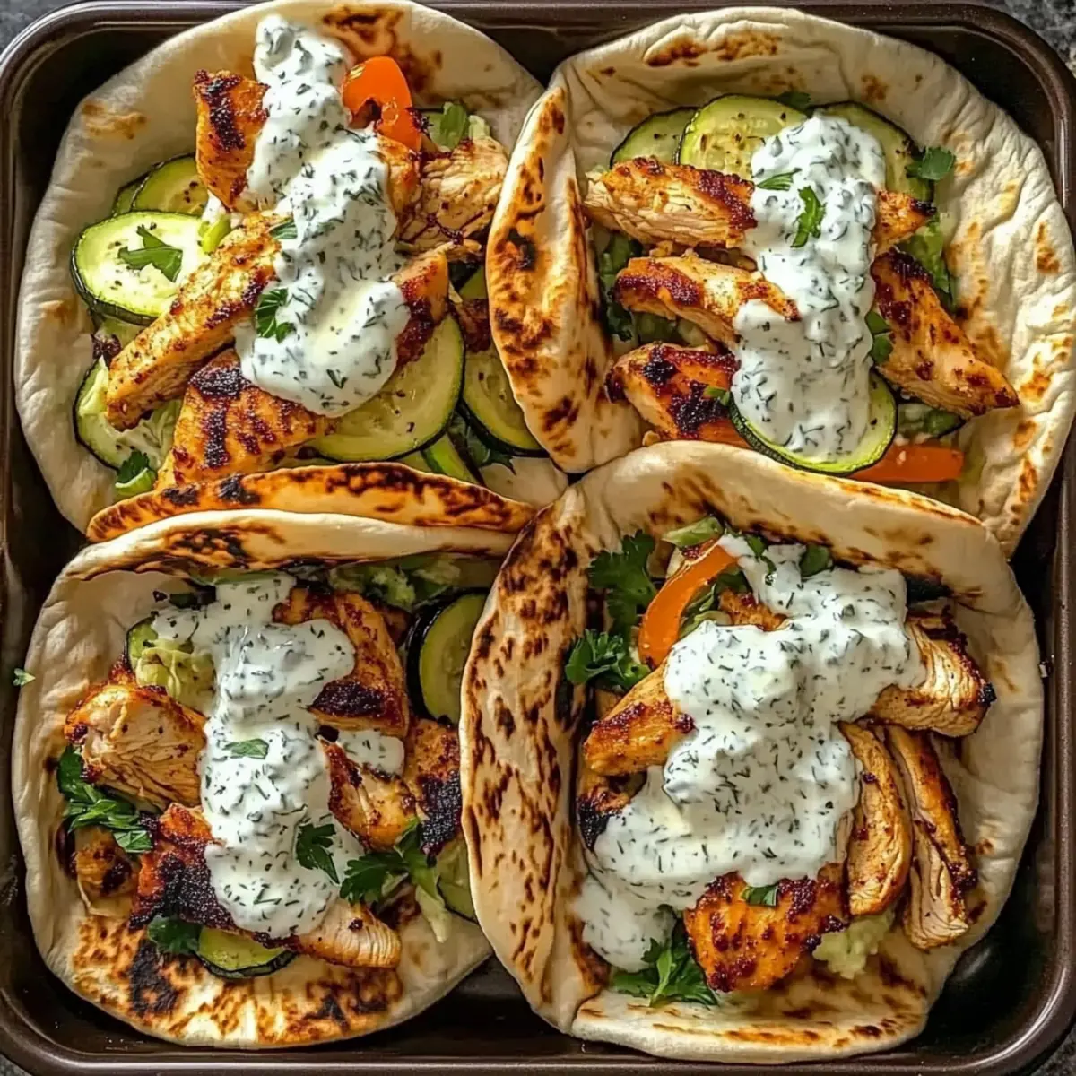 Freezer: Wrap individual pitas with chicken and veggies in plastic wrap, then place in a freezer bag. These can be frozen for up to 3 months for a quick meal option.