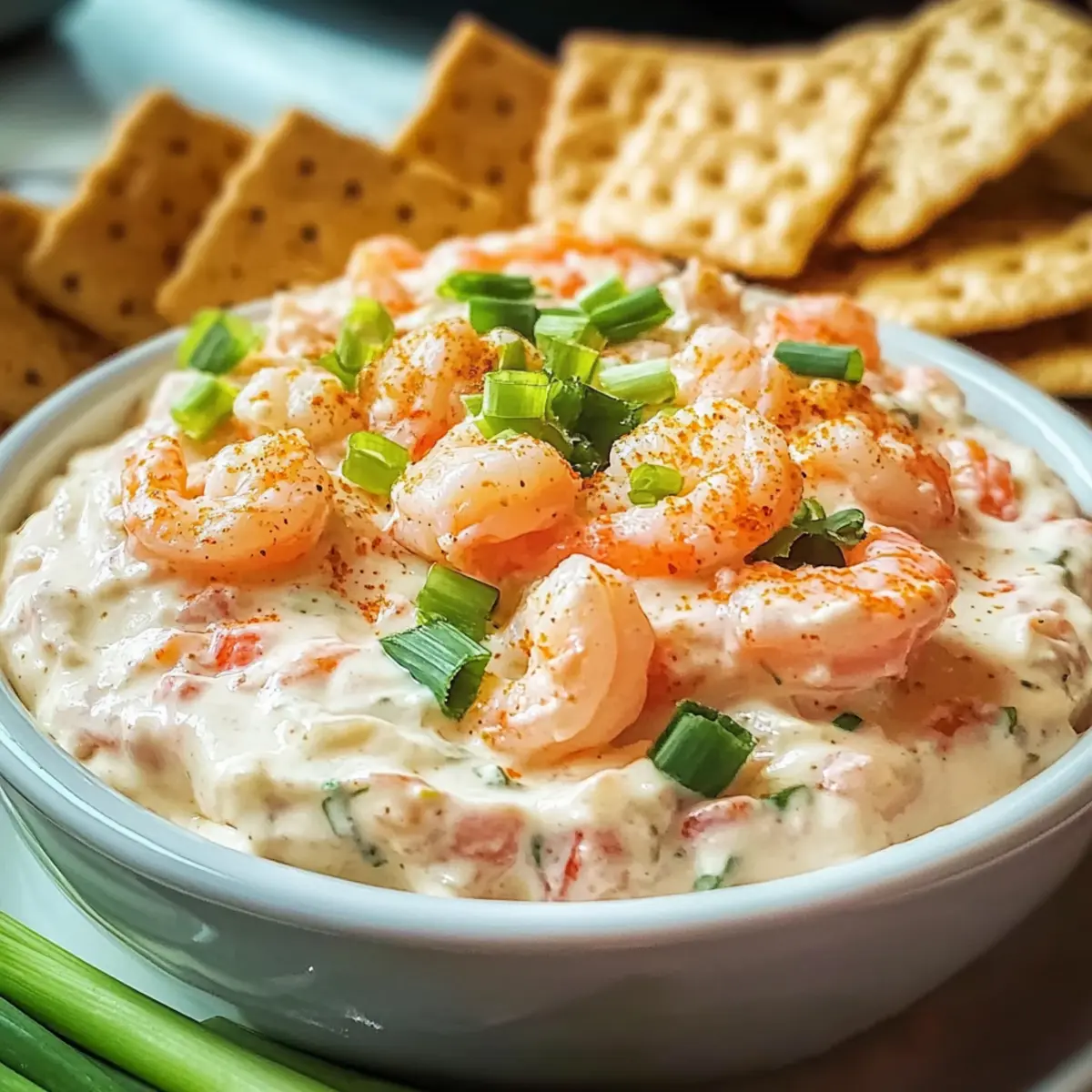 Once chilled, take out your Shrimp Dip and garnish it with the reserved shrimp pieces and additional green onions for color. Serve it alongside an array of crackers or fresh veggies for dipping. Dive into this creamy, savory delight that will impress your guests and have them coming back for more!